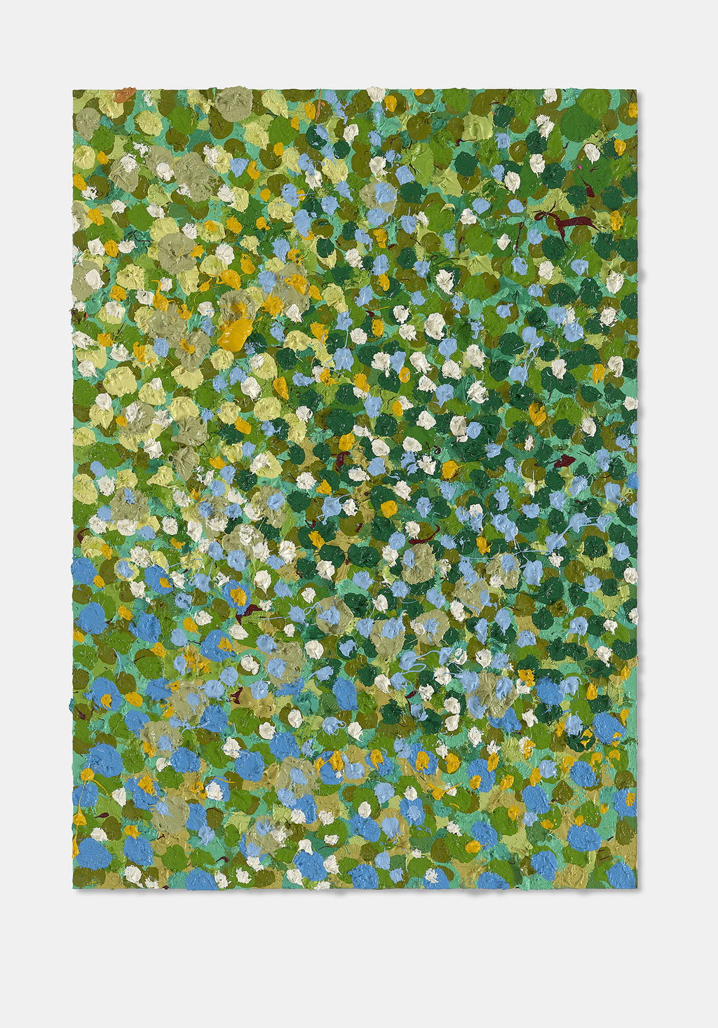 The Paper Veils are a series of 300 striking paintings on card completed in 2019, and available in two sizes. These paintings are a riotous ensemble of energetically coloured and thickly painted dots. Across each composition, Hirst revels in the joy of colour and the physicality of paint.