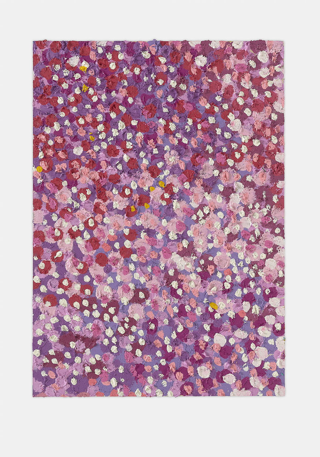 The Paper Veils are a series of 300 striking paintings on card completed in 2019, and available in two sizes. These paintings are a riotous ensemble of energetically coloured and thickly painted dots. Across each composition, Hirst revels in the joy of colour and the physicality of paint.