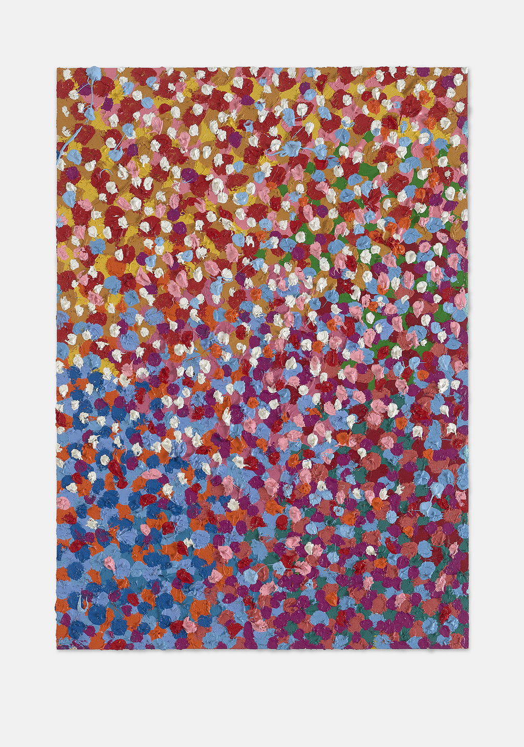 The Paper Veils are a series of 300 striking paintings on card completed in 2019, and available in two sizes. These paintings are a riotous ensemble of energetically coloured and thickly painted dots. Across each composition, Hirst revels in the joy of colour and the physicality of paint.