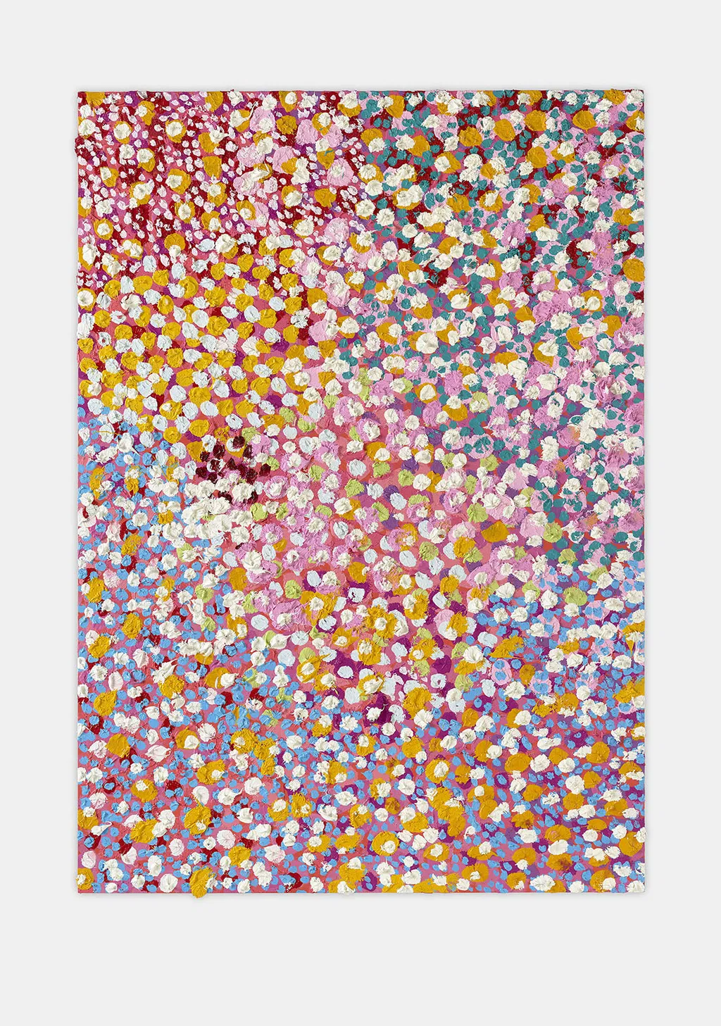 The Paper Veils are a series of 300 striking paintings on card completed in 2019, and available in two sizes. These paintings are a riotous ensemble of energetically coloured and thickly painted dots. Across each composition, Hirst revels in the joy of colour and the physicality of paint.