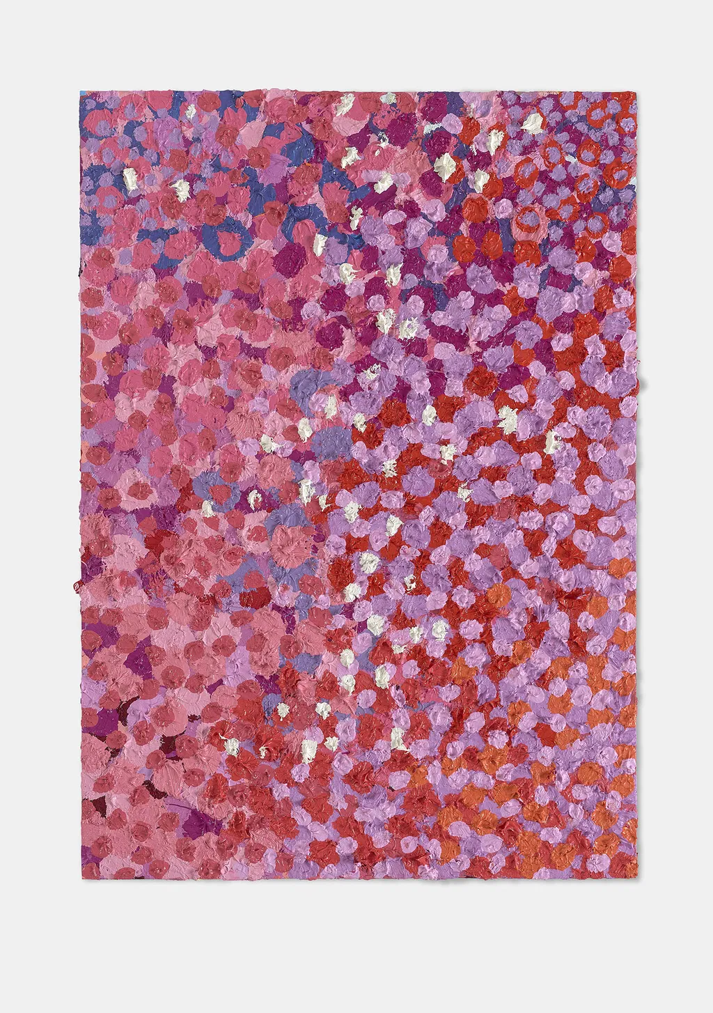 The Paper Veils are a series of 300 striking paintings on card completed in 2019, and available in two sizes. These paintings are a riotous ensemble of energetically coloured and thickly painted dots. Across each composition, Hirst revels in the joy of colour and the physicality of paint.
