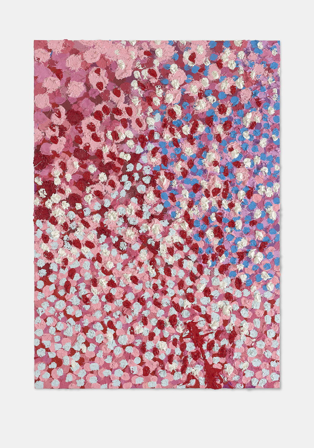 The Paper Veils are a series of 300 striking paintings on card completed in 2019, and available in two sizes. These paintings are a riotous ensemble of energetically coloured and thickly painted dots. Across each composition, Hirst revels in the joy of colour and the physicality of paint.