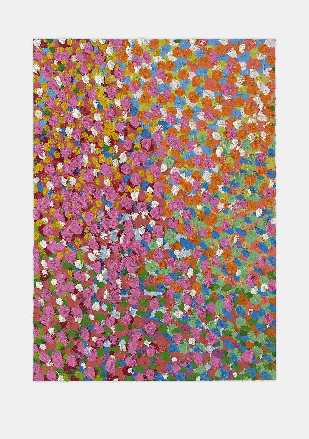 The Paper Veils are a series of 300 striking paintings on card completed in 2019, and available in two sizes. These paintings are a riotous ensemble of energetically coloured and thickly painted dots. Across each composition, Hirst revels in the joy of colour and the physicality of paint.