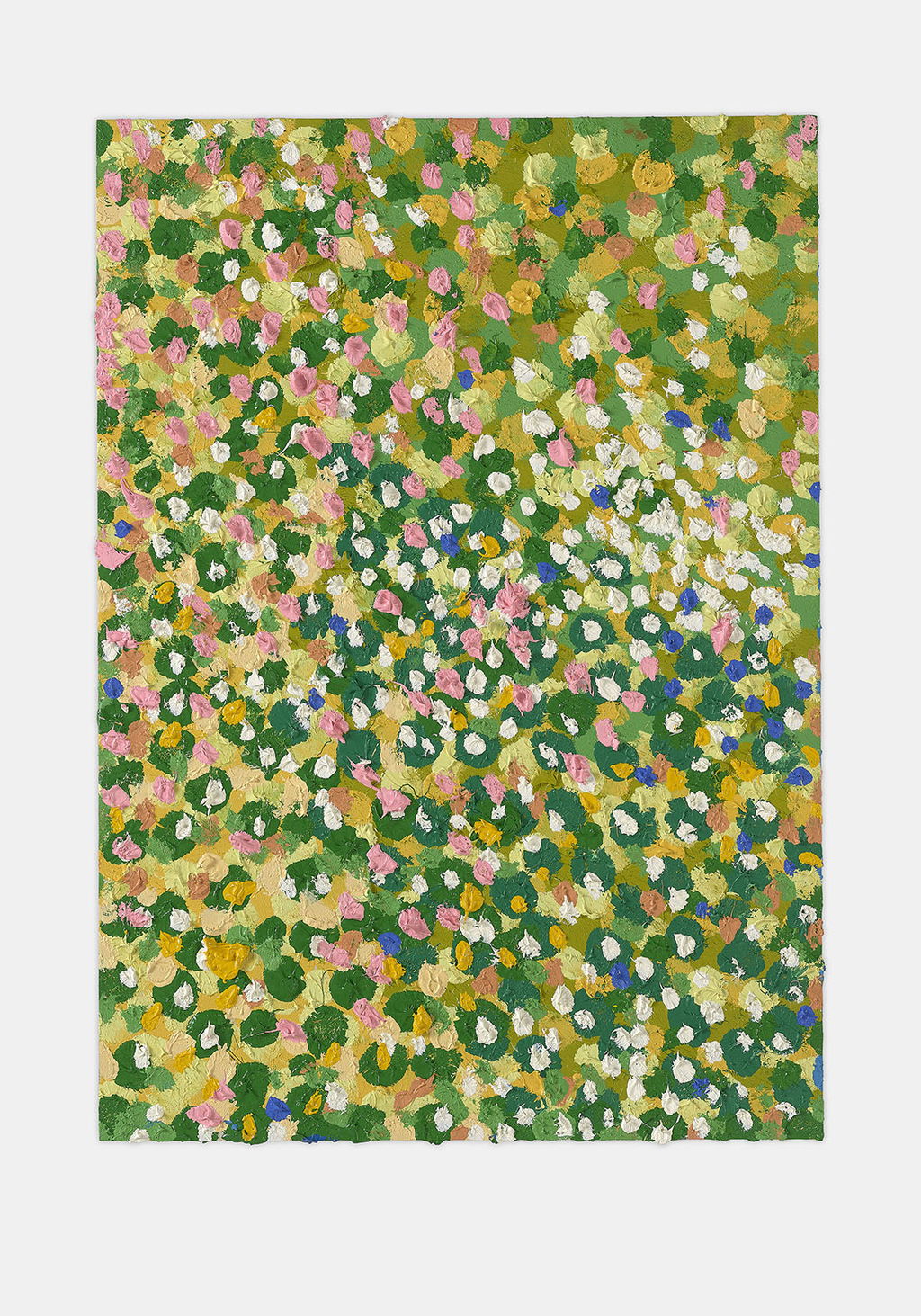 The Paper Veils are a series of 300 striking paintings on card completed in 2019, and available in two sizes. These paintings are a riotous ensemble of energetically coloured and thickly painted dots. Across each composition, Hirst revels in the joy of colour and the physicality of paint.