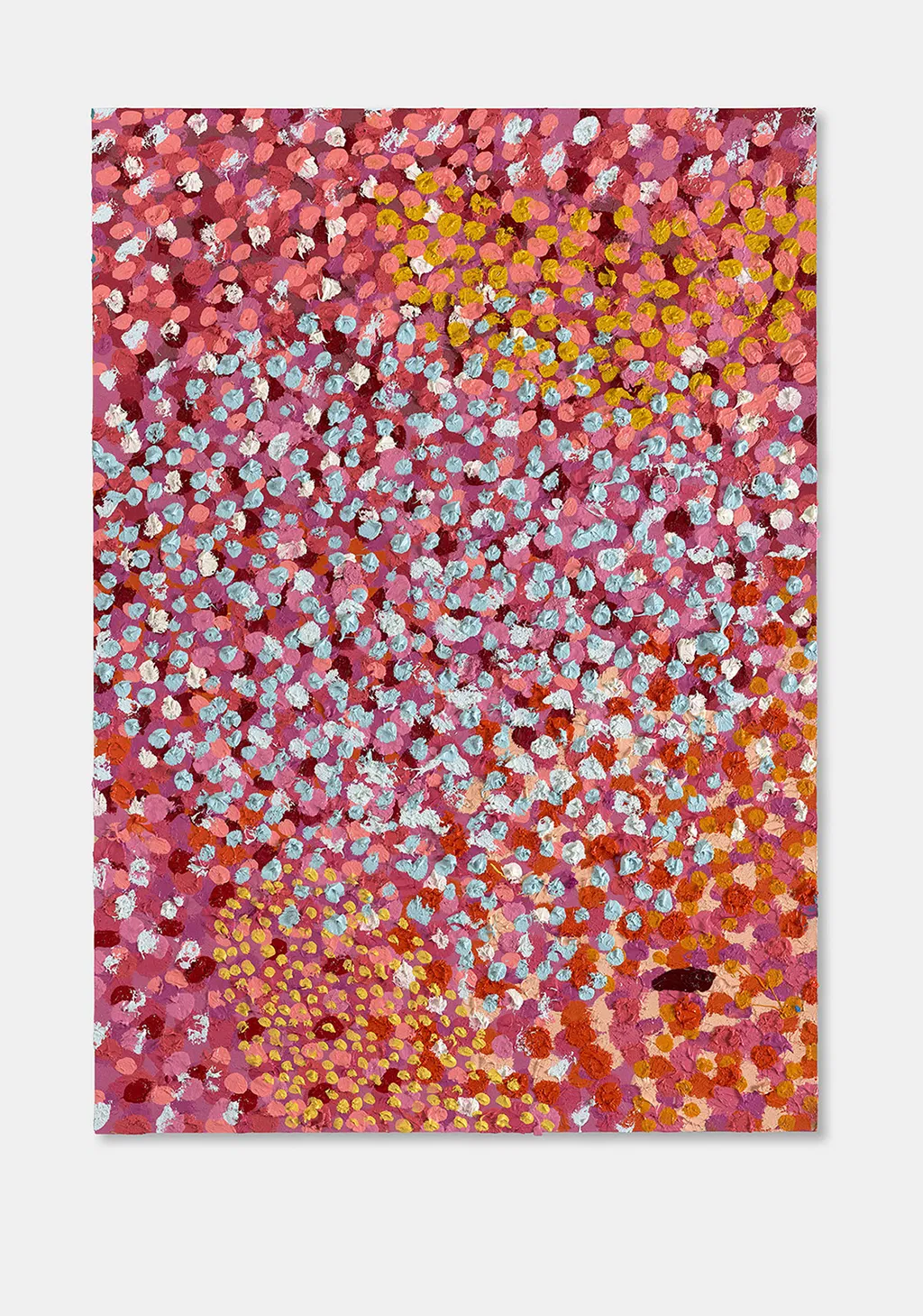 The Paper Veils are a series of 300 striking paintings on card completed in 2019, and available in two sizes. These paintings are a riotous ensemble of energetically coloured and thickly painted dots. Across each composition, Hirst revels in the joy of colour and the physicality of paint.