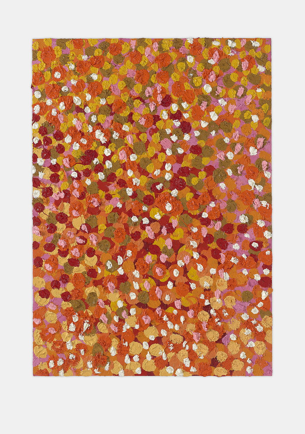 The Paper Veils are a series of 300 striking paintings on card completed in 2019, and available in two sizes. These paintings are a riotous ensemble of energetically coloured and thickly painted dots. Across each composition, Hirst revels in the joy of colour and the physicality of paint.