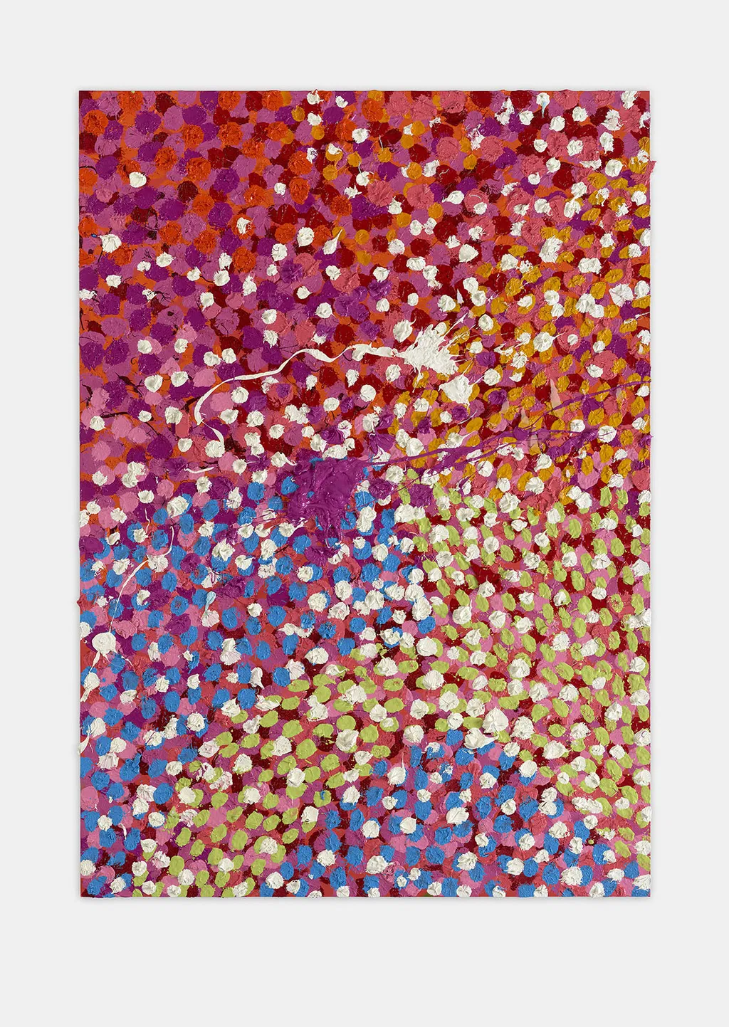 The Paper Veils are a series of 300 striking paintings on card completed in 2019, and available in two sizes. These paintings are a riotous ensemble of energetically coloured and thickly painted dots. Across each composition, Hirst revels in the joy of colour and the physicality of paint.
