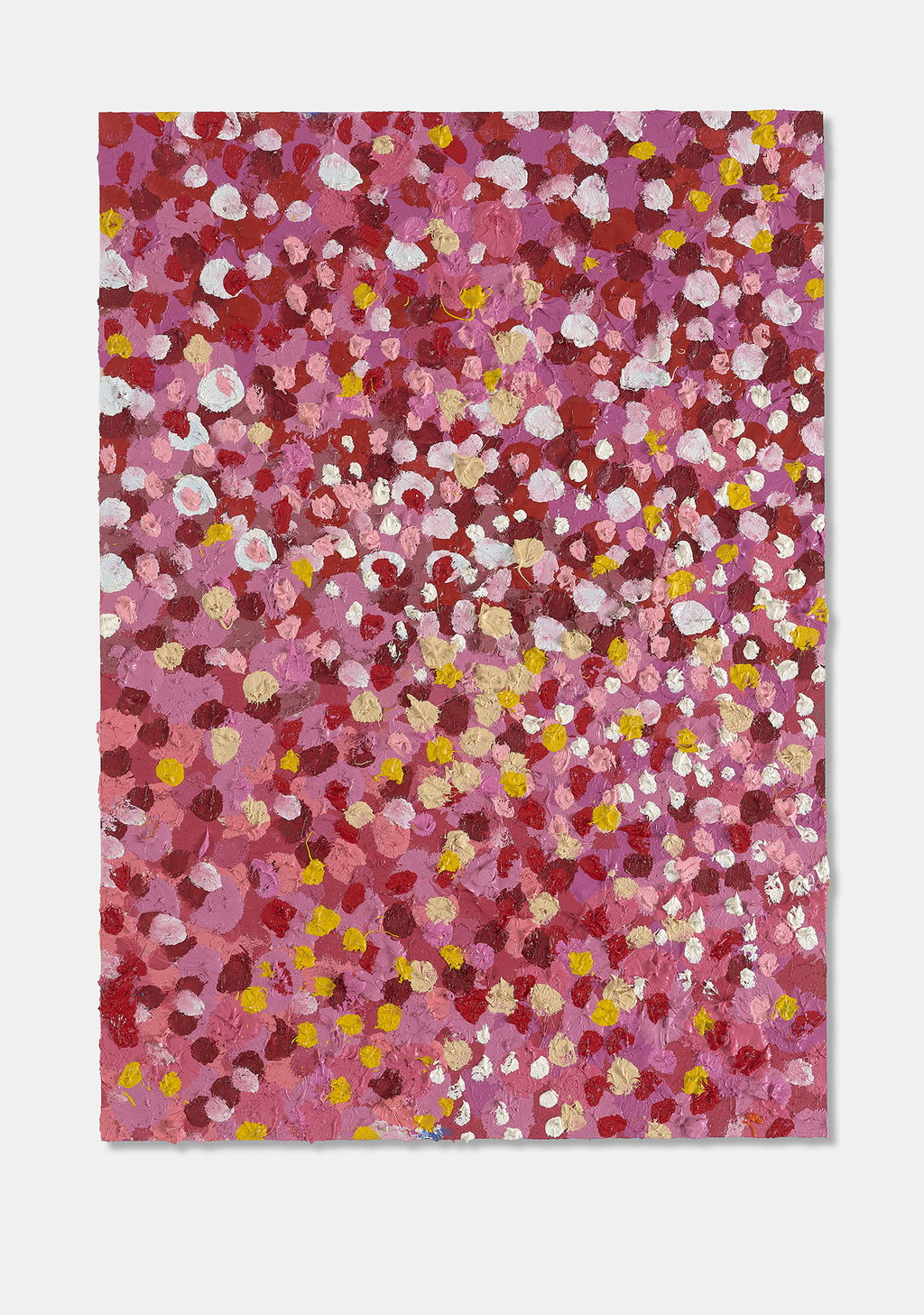 The Paper Veils are a series of 300 striking paintings on card completed in 2019, and available in two sizes. These paintings are a riotous ensemble of energetically coloured and thickly painted dots. Across each composition, Hirst revels in the joy of colour and the physicality of paint.