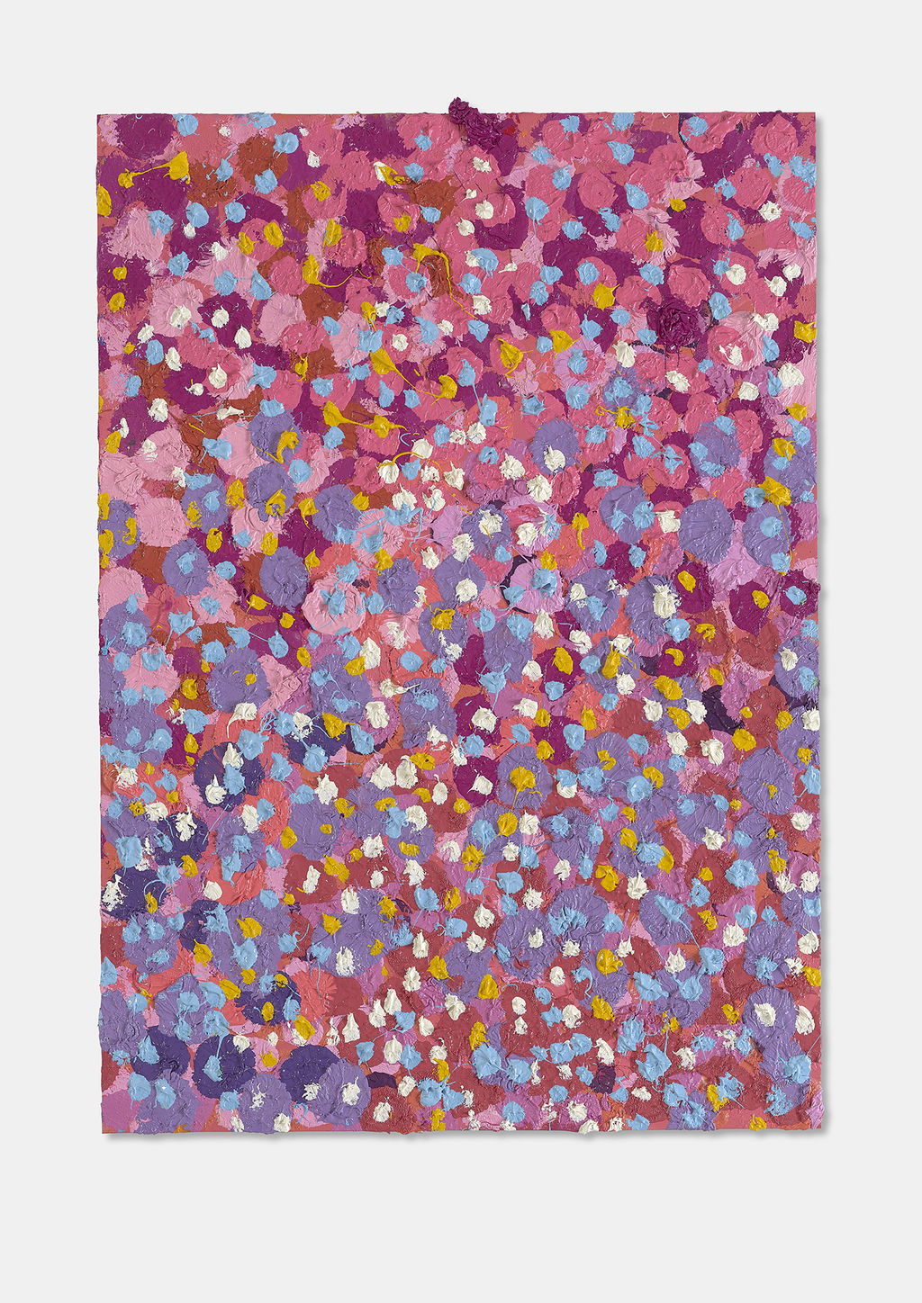 The Paper Veils are a series of 300 striking paintings on card completed in 2019, and available in two sizes. These paintings are a riotous ensemble of energetically coloured and thickly painted dots. Across each composition, Hirst revels in the joy of colour and the physicality of paint.