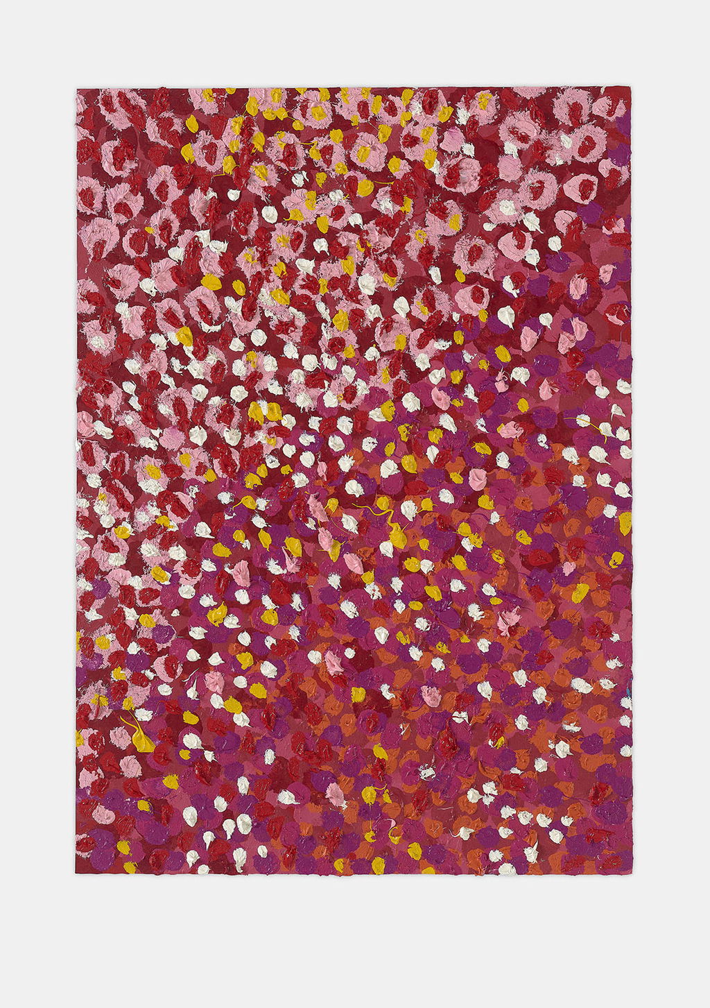 The Paper Veils are a series of 300 striking paintings on card completed in 2019, and available in two sizes. These paintings are a riotous ensemble of energetically coloured and thickly painted dots. Across each composition, Hirst revels in the joy of colour and the physicality of paint.