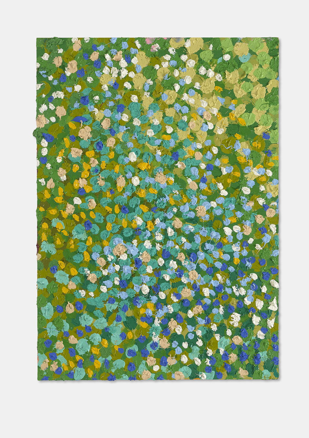 The Paper Veils are a series of 300 striking paintings on card completed in 2019, and available in two sizes. These paintings are a riotous ensemble of energetically coloured and thickly painted dots. Across each composition, Hirst revels in the joy of colour and the physicality of paint.