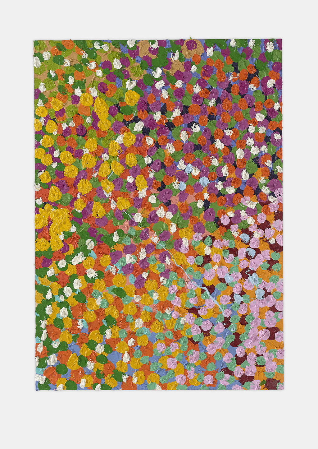 The Paper Veils are a series of 300 striking paintings on card completed in 2019, and available in two sizes. These paintings are a riotous ensemble of energetically coloured and thickly painted dots. Across each composition, Hirst revels in the joy of colour and the physicality of paint.