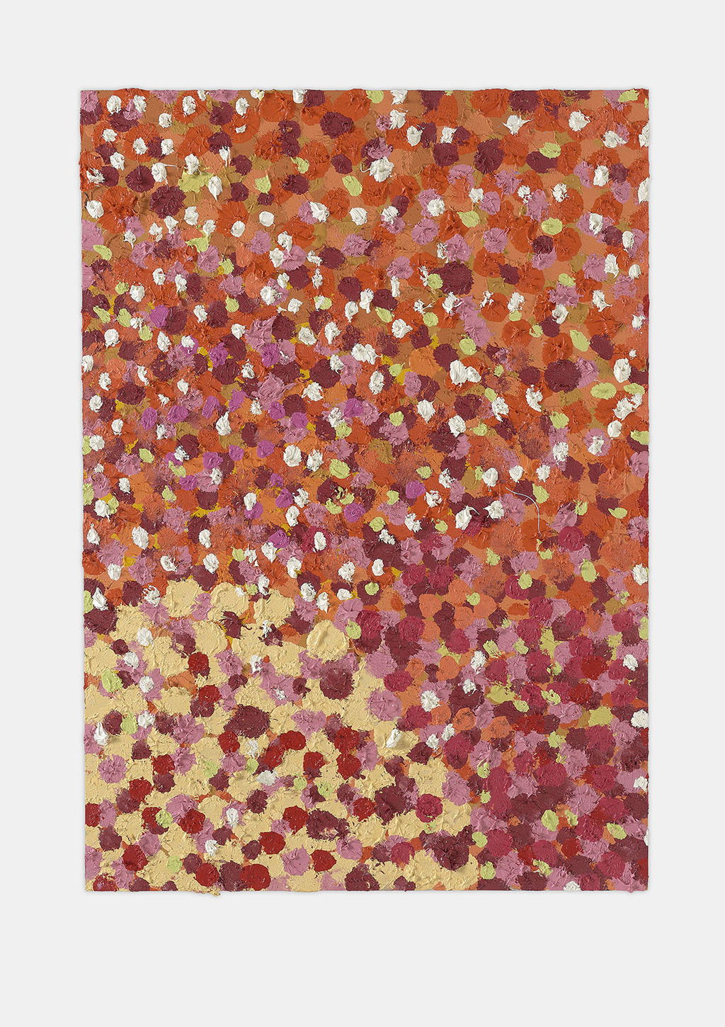 The Paper Veils are a series of 300 striking paintings on card completed in 2019, and available in two sizes. These paintings are a riotous ensemble of energetically coloured and thickly painted dots. Across each composition, Hirst revels in the joy of colour and the physicality of paint.