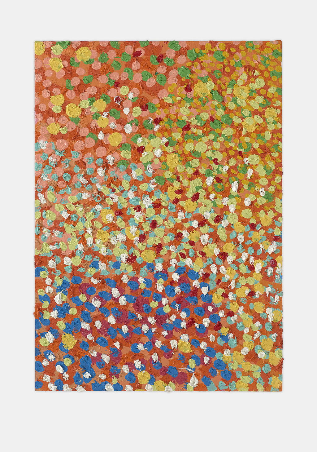 The Paper Veils are a series of 300 striking paintings on card completed in 2019, and available in two sizes. These paintings are a riotous ensemble of energetically coloured and thickly painted dots. Across each composition, Hirst revels in the joy of colour and the physicality of paint.
