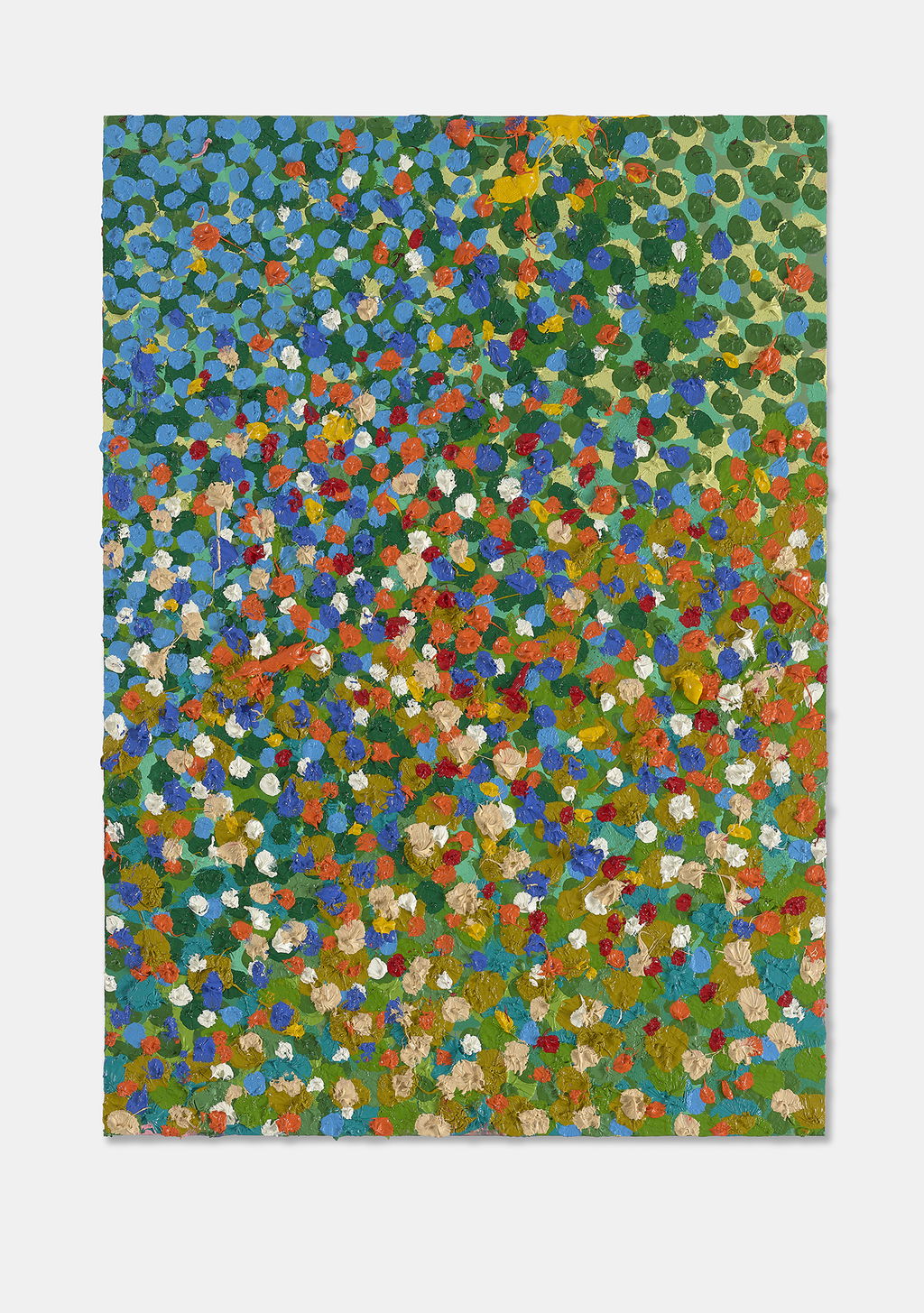 The Paper Veils are a series of 300 striking paintings on card completed in 2019, and available in two sizes. These paintings are a riotous ensemble of energetically coloured and thickly painted dots. Across each composition, Hirst revels in the joy of colour and the physicality of paint.