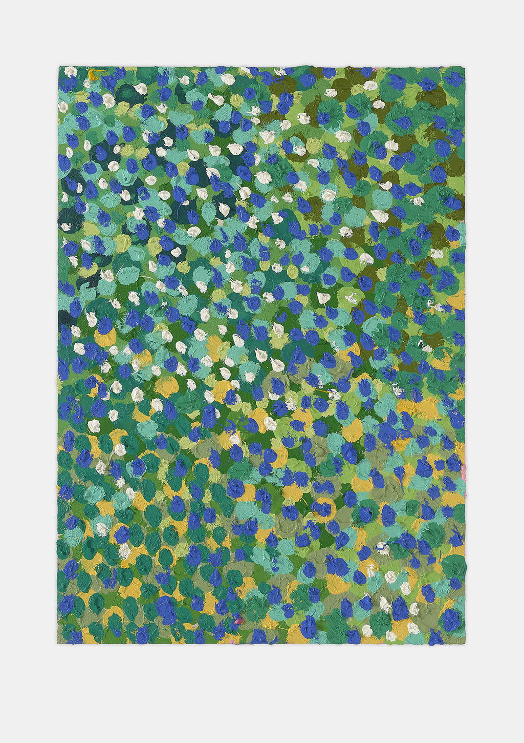 The Paper Veils are a series of 300 striking paintings on card completed in 2019, and available in two sizes. These paintings are a riotous ensemble of energetically coloured and thickly painted dots. Across each composition, Hirst revels in the joy of colour and the physicality of paint.