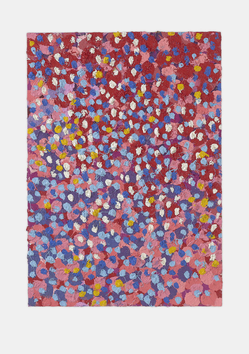 The Paper Veils are a series of 300 striking paintings on card completed in 2019, and available in two sizes. These paintings are a riotous ensemble of energetically coloured and thickly painted dots. Across each composition, Hirst revels in the joy of colour and the physicality of paint.