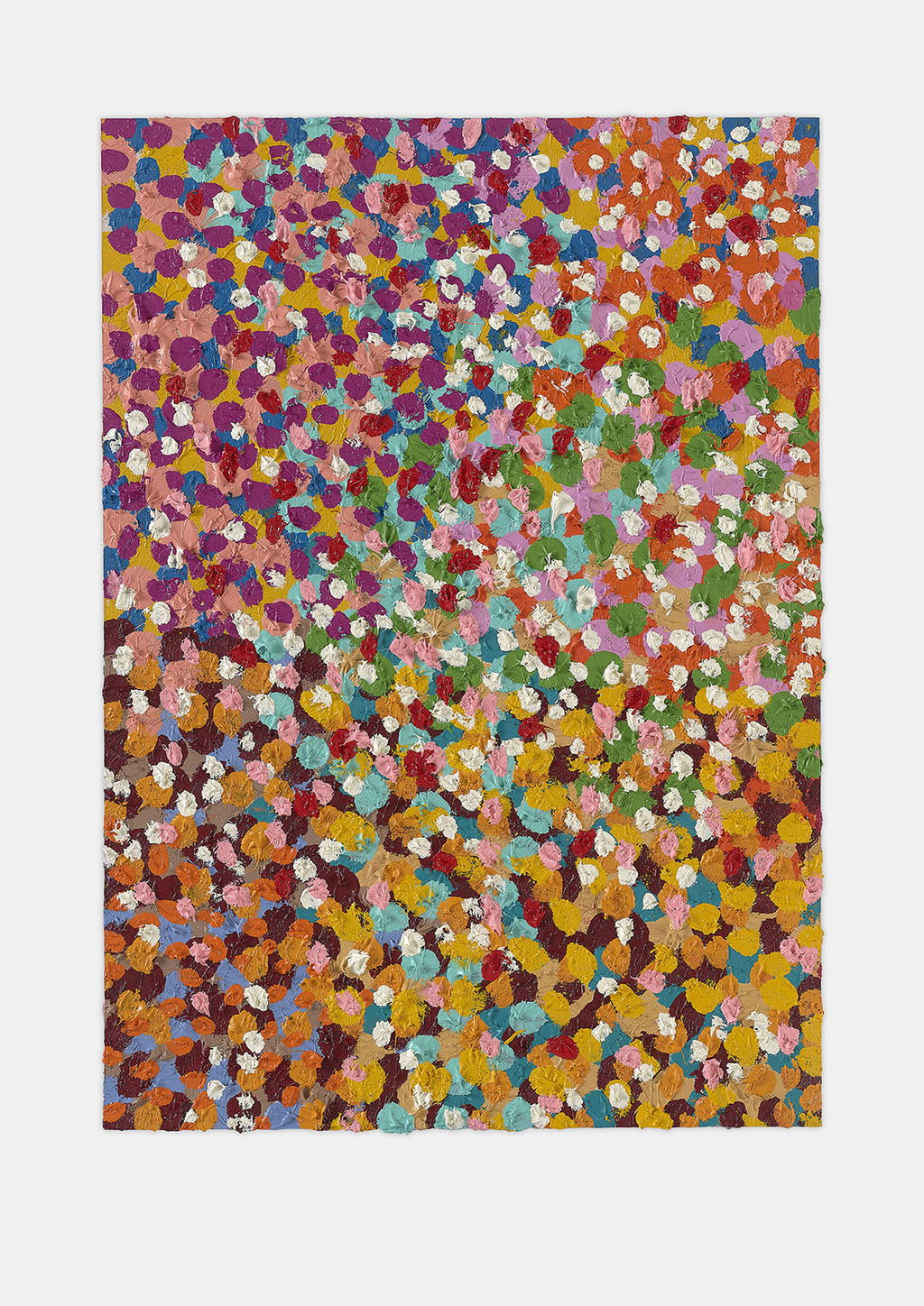 The Paper Veils are a series of 300 striking paintings on card completed in 2019, and available in two sizes. These paintings are a riotous ensemble of energetically coloured and thickly painted dots. Across each composition, Hirst revels in the joy of colour and the physicality of paint.