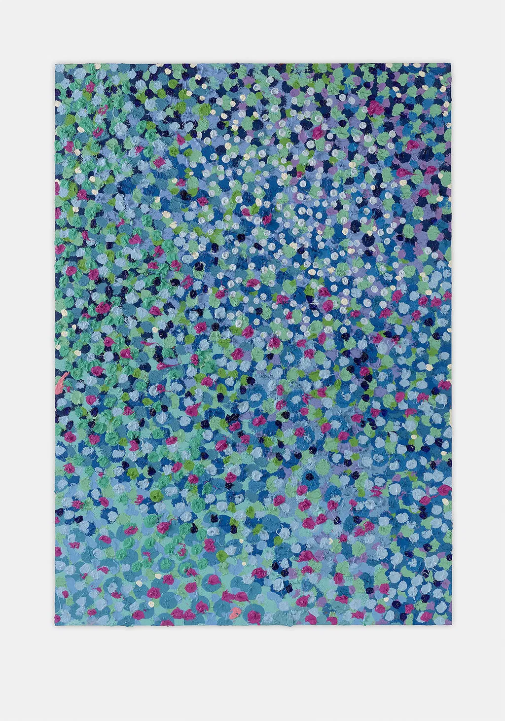 The Paper Veils are a series of 300 striking paintings on card completed in 2019, and available in two sizes. These paintings are a riotous ensemble of energetically coloured and thickly painted dots. Across each composition, Hirst revels in the joy of colour and the physicality of paint.