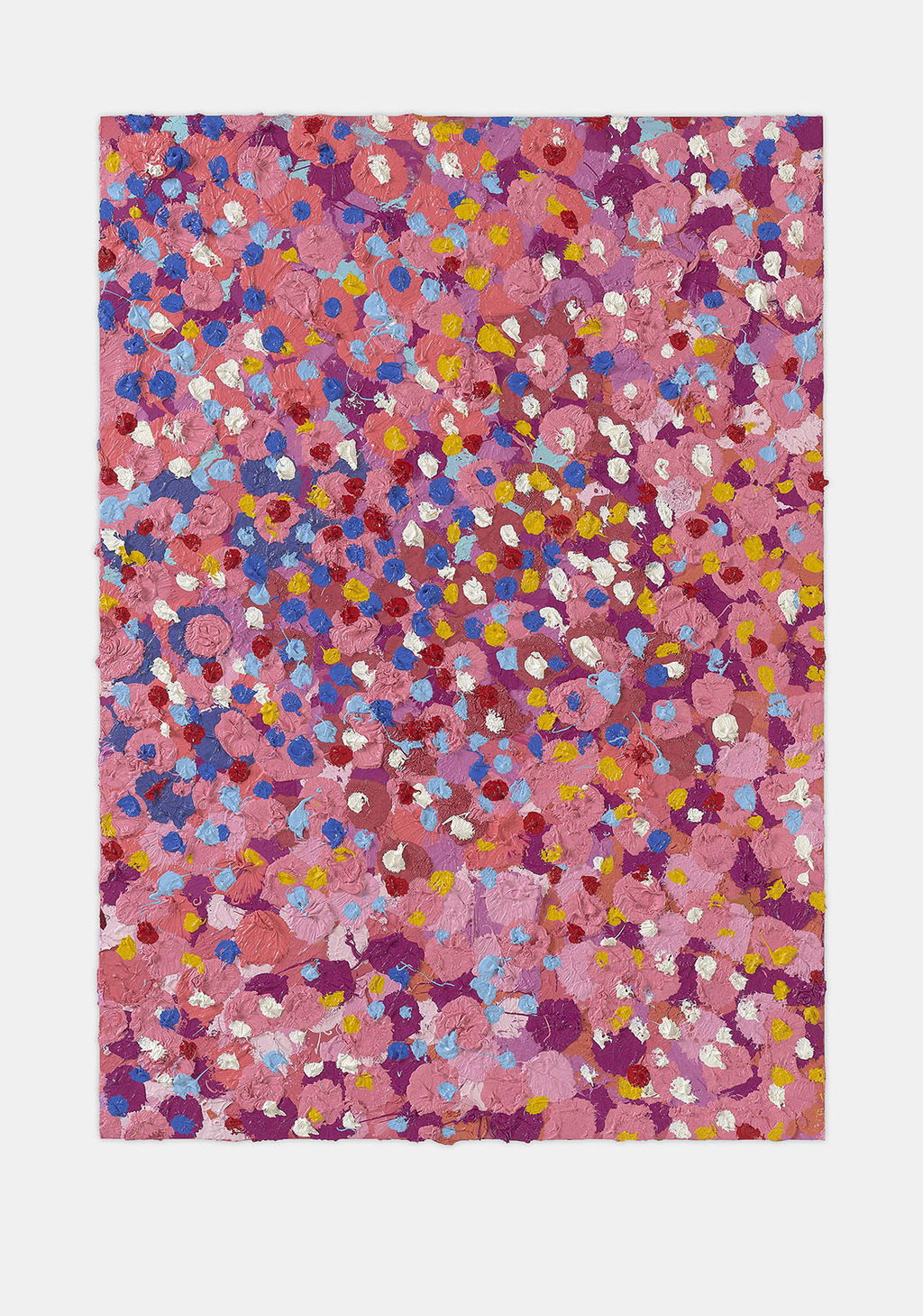The Paper Veils are a series of 300 striking paintings on card completed in 2019, and available in two sizes. These paintings are a riotous ensemble of energetically coloured and thickly painted dots. Across each composition, Hirst revels in the joy of colour and the physicality of paint.