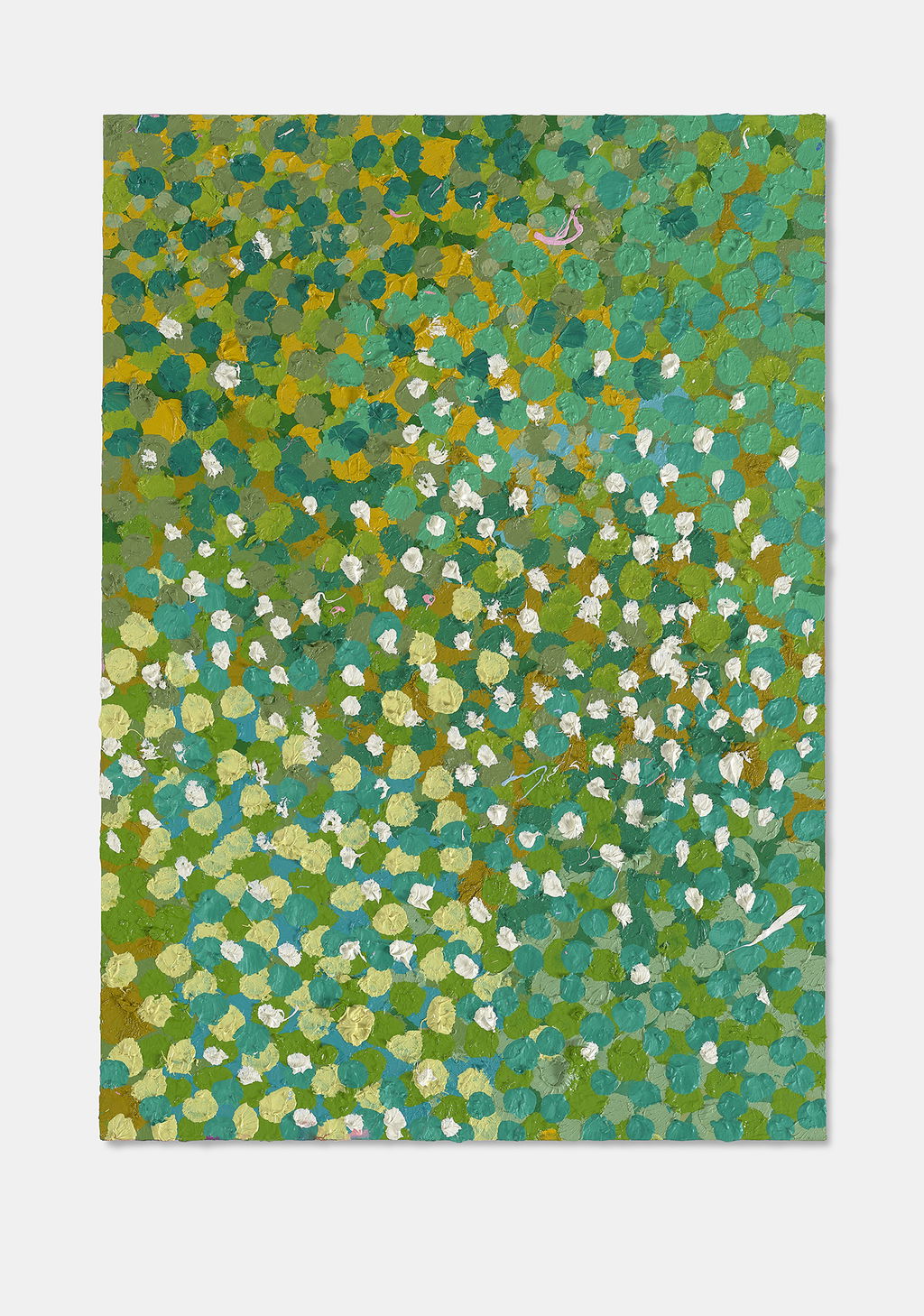 The Paper Veils are a series of 300 striking paintings on card completed in 2019, and available in two sizes. These paintings are a riotous ensemble of energetically coloured and thickly painted dots. Across each composition, Hirst revels in the joy of colour and the physicality of paint.