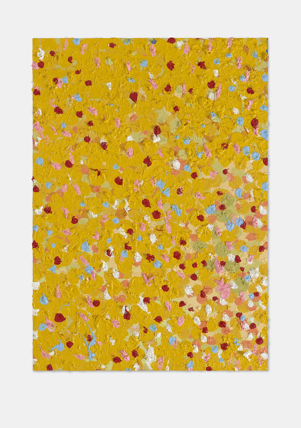 The Paper Veils are a series of 300 striking paintings on card completed in 2019, and available in two sizes. These paintings are a riotous ensemble of energetically coloured and thickly painted dots. Across each composition, Hirst revels in the joy of colour and the physicality of paint.