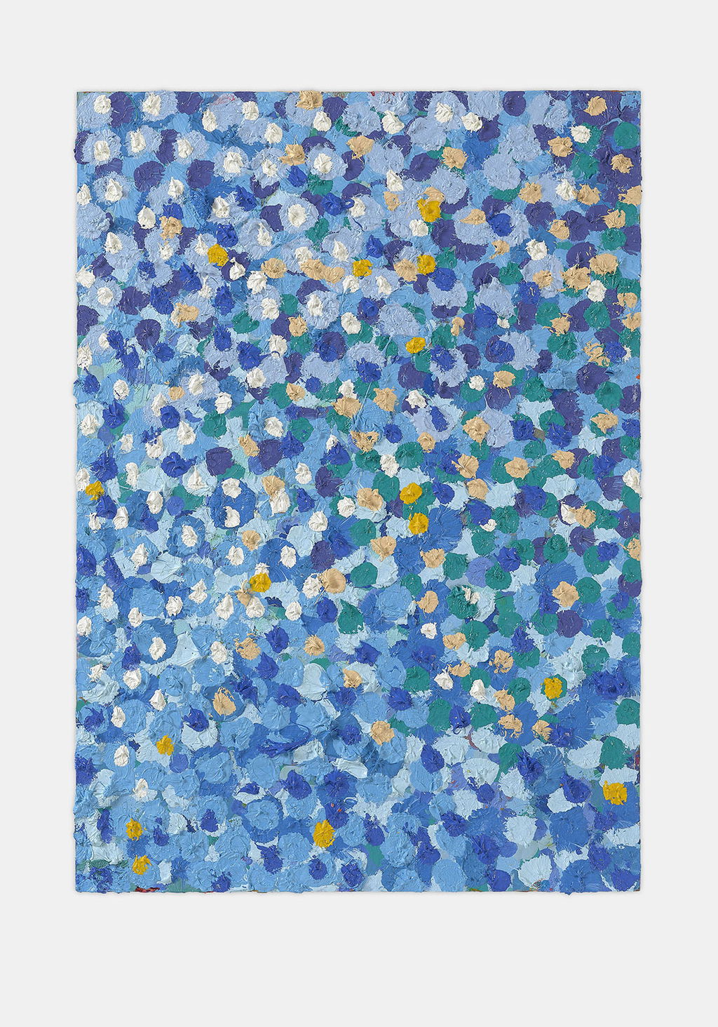 The Paper Veils are a series of 300 striking paintings on card completed in 2019, and available in two sizes. These paintings are a riotous ensemble of energetically coloured and thickly painted dots. Across each composition, Hirst revels in the joy of colour and the physicality of paint.