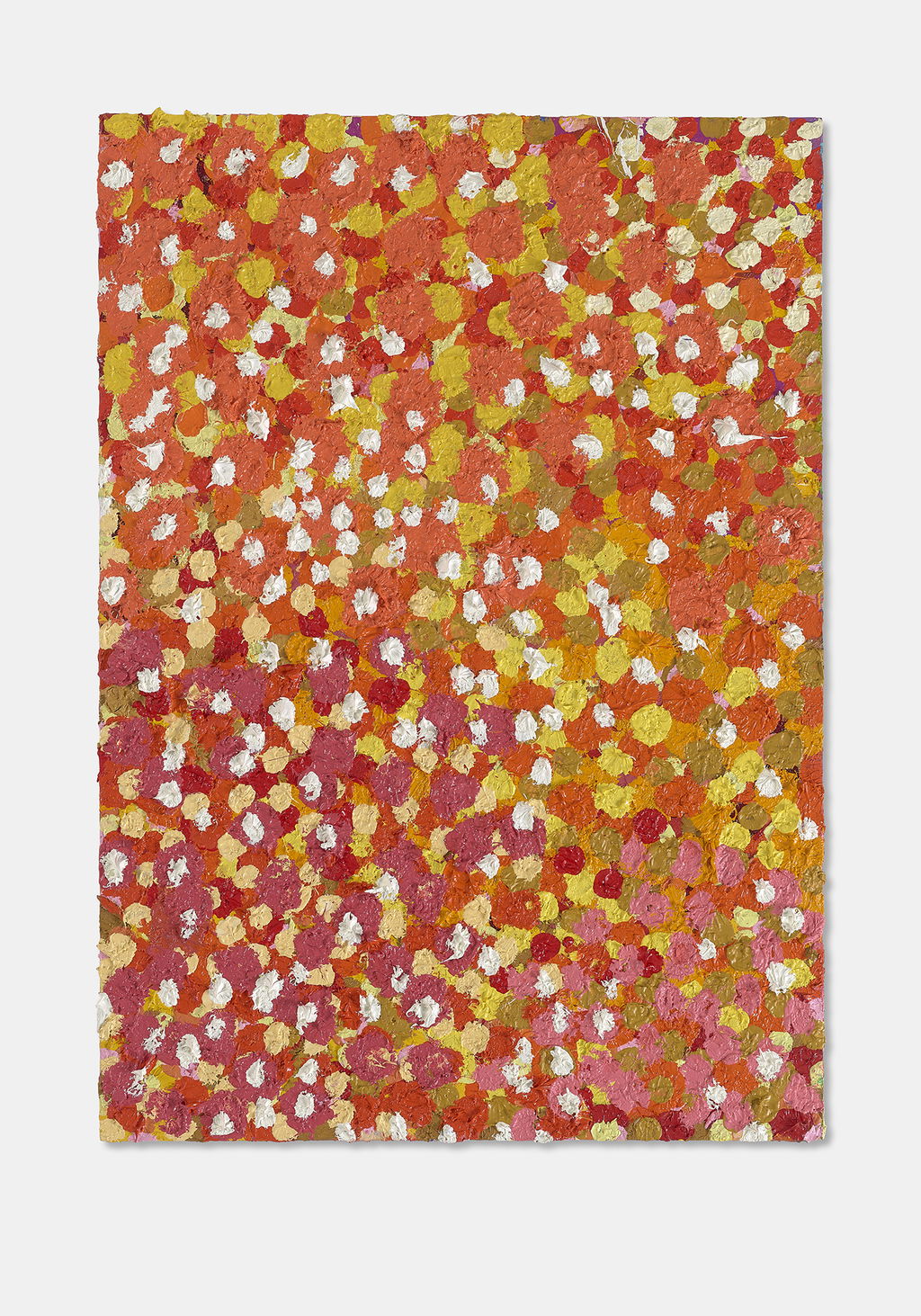 The Paper Veils are a series of 300 striking paintings on card completed in 2019, and available in two sizes. These paintings are a riotous ensemble of energetically coloured and thickly painted dots. Across each composition, Hirst revels in the joy of colour and the physicality of paint.