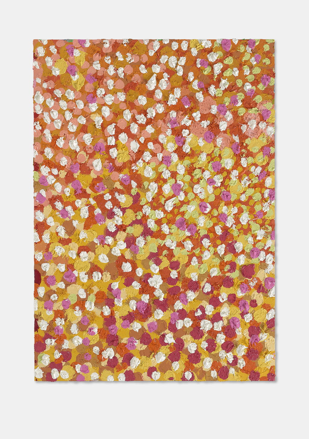 The Paper Veils are a series of 300 striking paintings on card completed in 2019, and available in two sizes. These paintings are a riotous ensemble of energetically coloured and thickly painted dots. Across each composition, Hirst revels in the joy of colour and the physicality of paint.