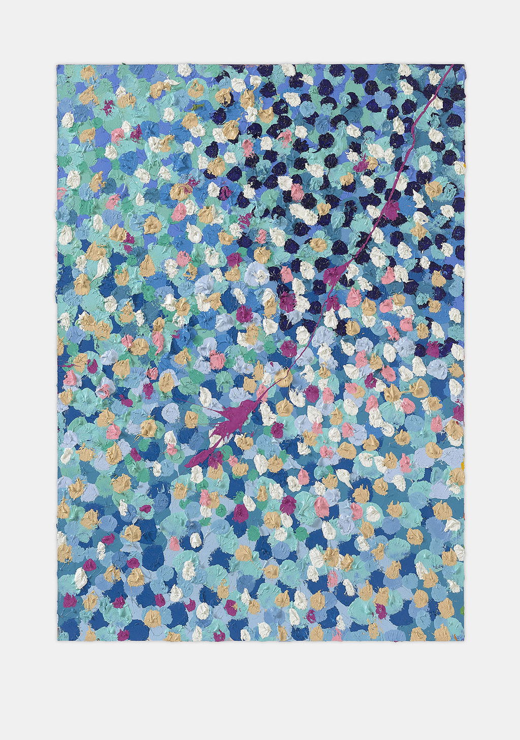 The Paper Veils are a series of 300 striking paintings on card completed in 2019, and available in two sizes. These paintings are a riotous ensemble of energetically coloured and thickly painted dots. Across each composition, Hirst revels in the joy of colour and the physicality of paint.