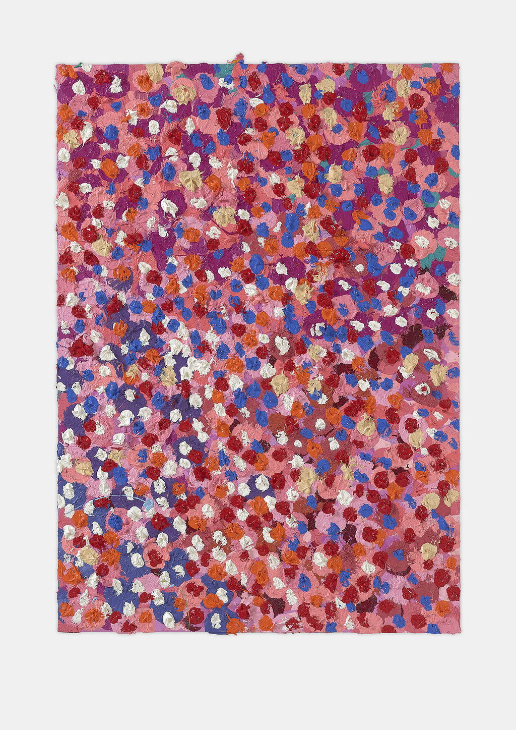 The Paper Veils are a series of 300 striking paintings on card completed in 2019, and available in two sizes. These paintings are a riotous ensemble of energetically coloured and thickly painted dots. Across each composition, Hirst revels in the joy of colour and the physicality of paint.