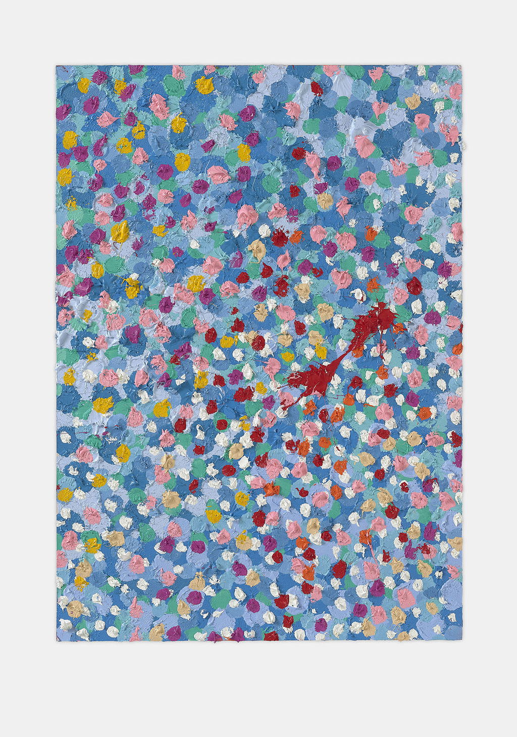 The Paper Veils are a series of 300 striking paintings on card completed in 2019, and available in two sizes. These paintings are a riotous ensemble of energetically coloured and thickly painted dots. Across each composition, Hirst revels in the joy of colour and the physicality of paint.