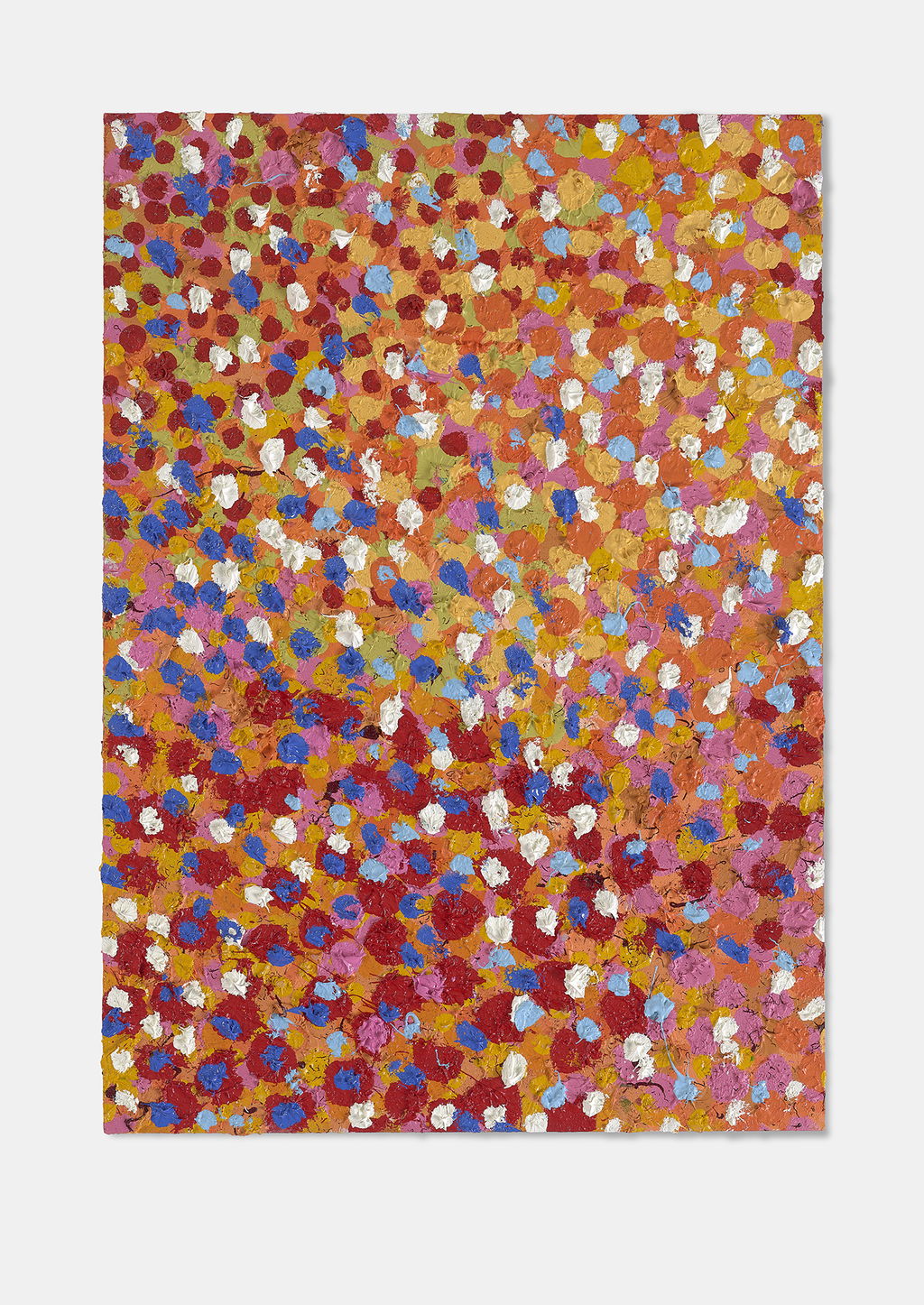 The Paper Veils are a series of 300 striking paintings on card completed in 2019, and available in two sizes. These paintings are a riotous ensemble of energetically coloured and thickly painted dots. Across each composition, Hirst revels in the joy of colour and the physicality of paint.