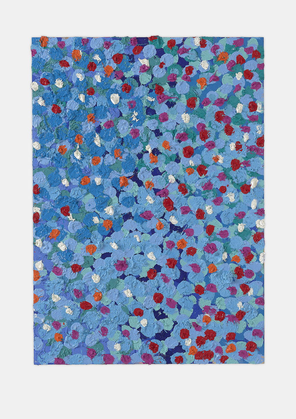 The Paper Veils are a series of 300 striking paintings on card completed in 2019, and available in two sizes. These paintings are a riotous ensemble of energetically coloured and thickly painted dots. Across each composition, Hirst revels in the joy of colour and the physicality of paint.