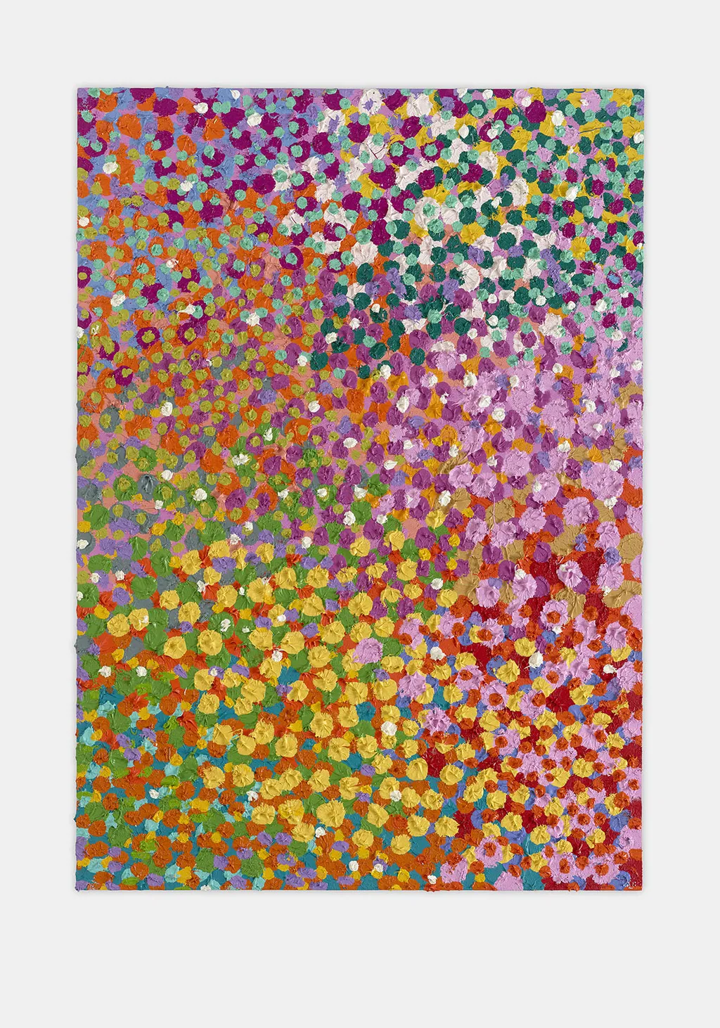 The Paper Veils are a series of 300 striking paintings on card completed in 2019, and available in two sizes. These paintings are a riotous ensemble of energetically coloured and thickly painted dots. Across each composition, Hirst revels in the joy of colour and the physicality of paint.