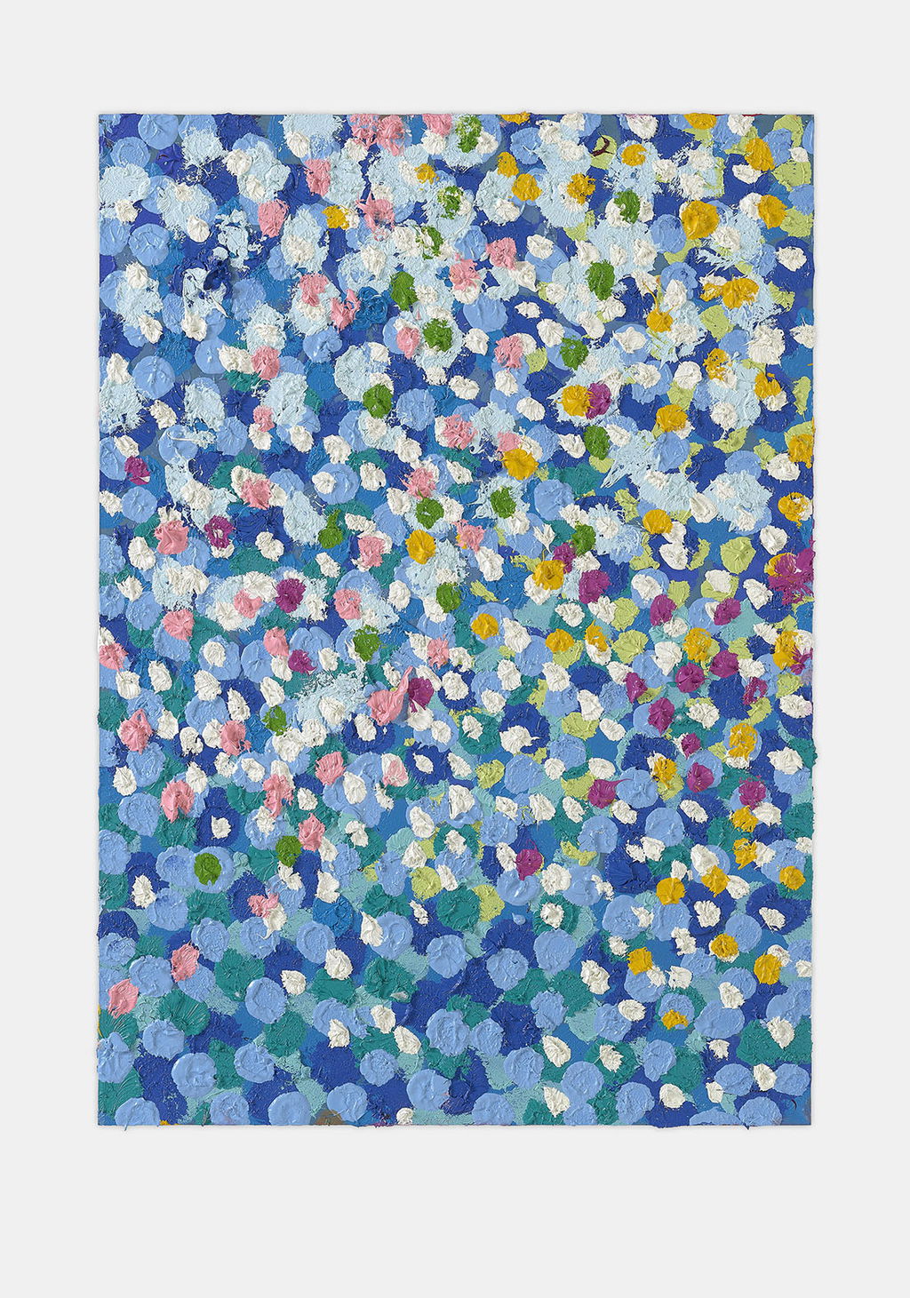 The Paper Veils are a series of 300 striking paintings on card completed in 2019, and available in two sizes. These paintings are a riotous ensemble of energetically coloured and thickly painted dots. Across each composition, Hirst revels in the joy of colour and the physicality of paint.