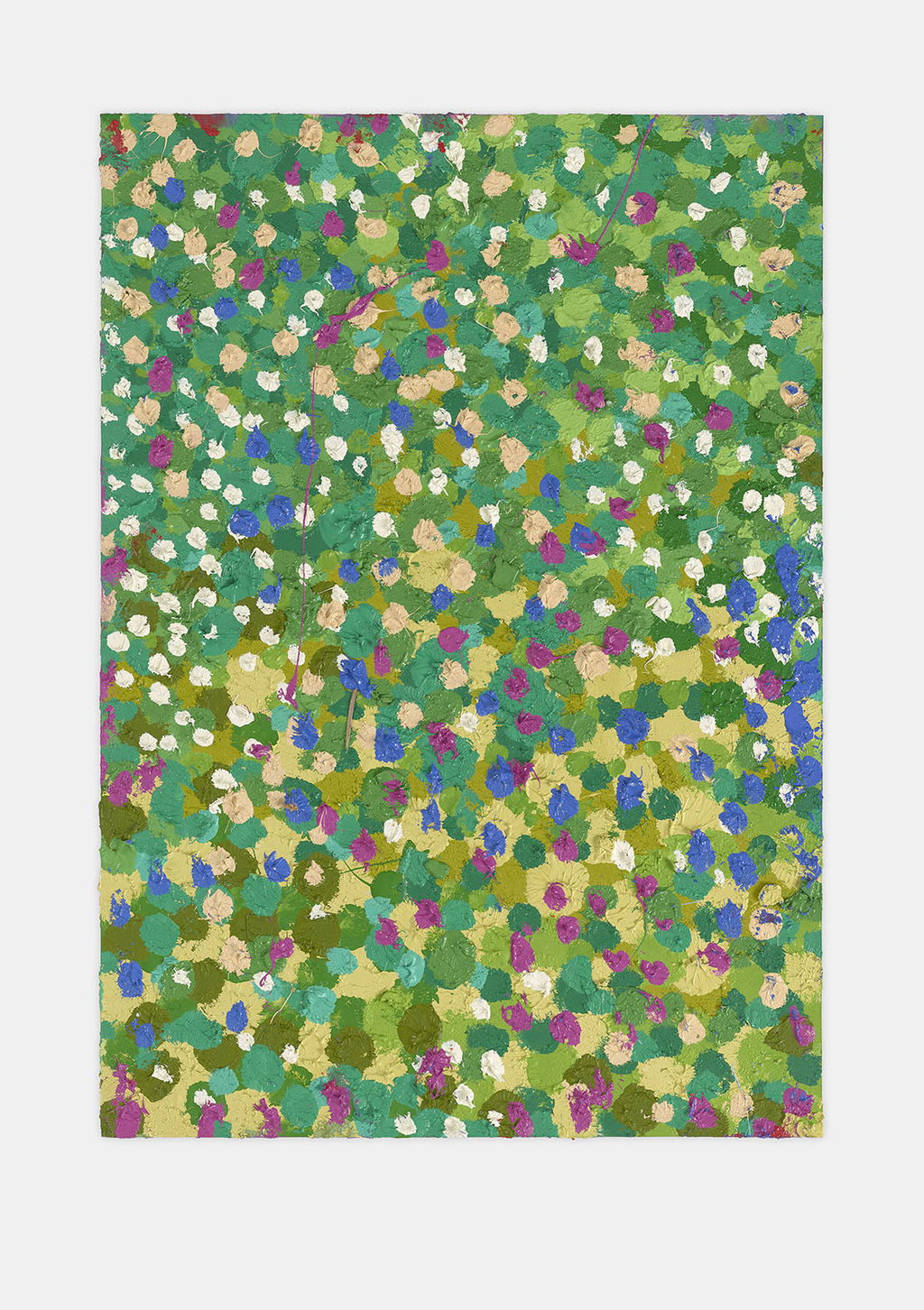 The Paper Veils are a series of 300 striking paintings on card completed in 2019, and available in two sizes. These paintings are a riotous ensemble of energetically coloured and thickly painted dots. Across each composition, Hirst revels in the joy of colour and the physicality of paint.