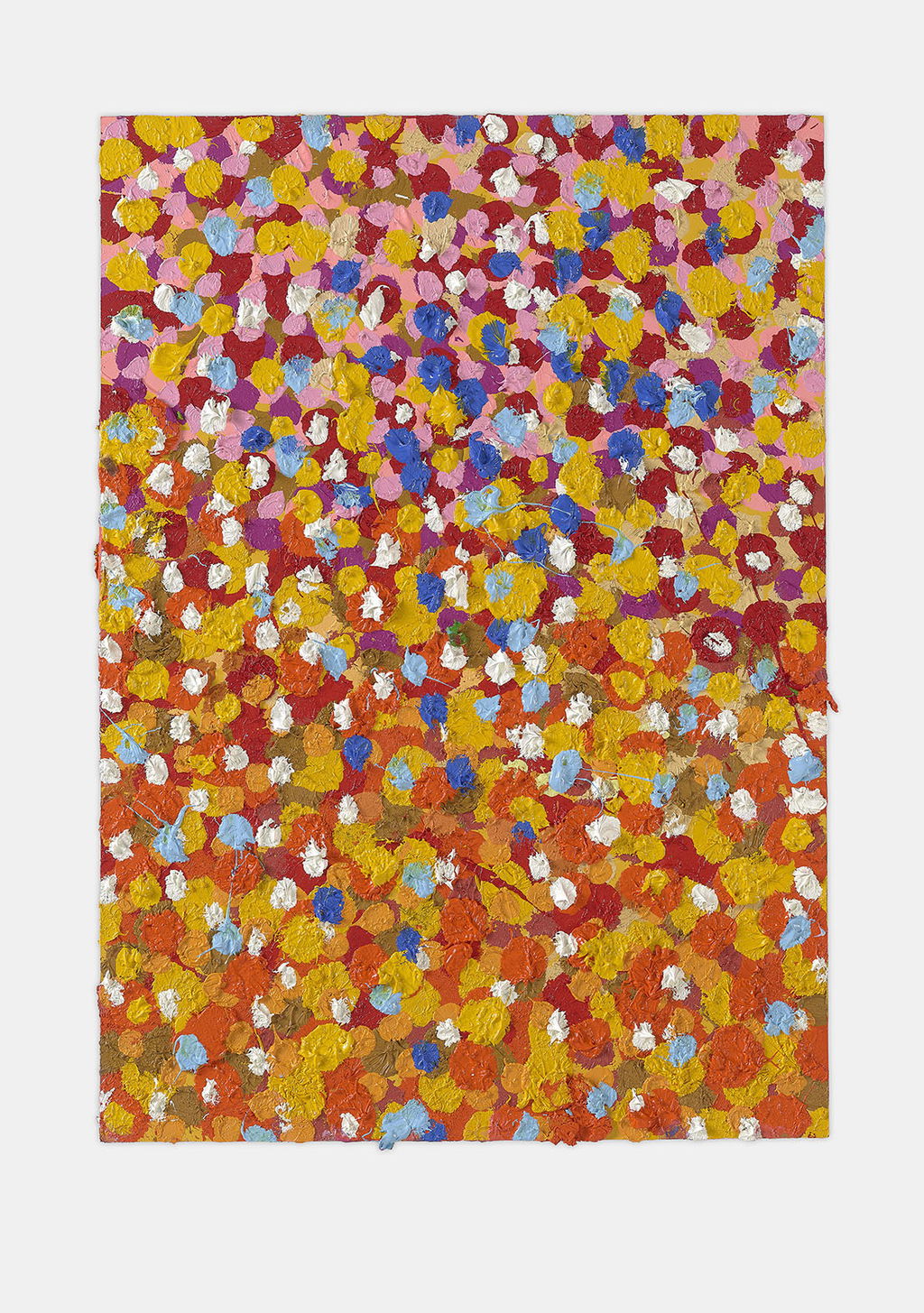 The Paper Veils are a series of 300 striking paintings on card completed in 2019, and available in two sizes. These paintings are a riotous ensemble of energetically coloured and thickly painted dots. Across each composition, Hirst revels in the joy of colour and the physicality of paint.