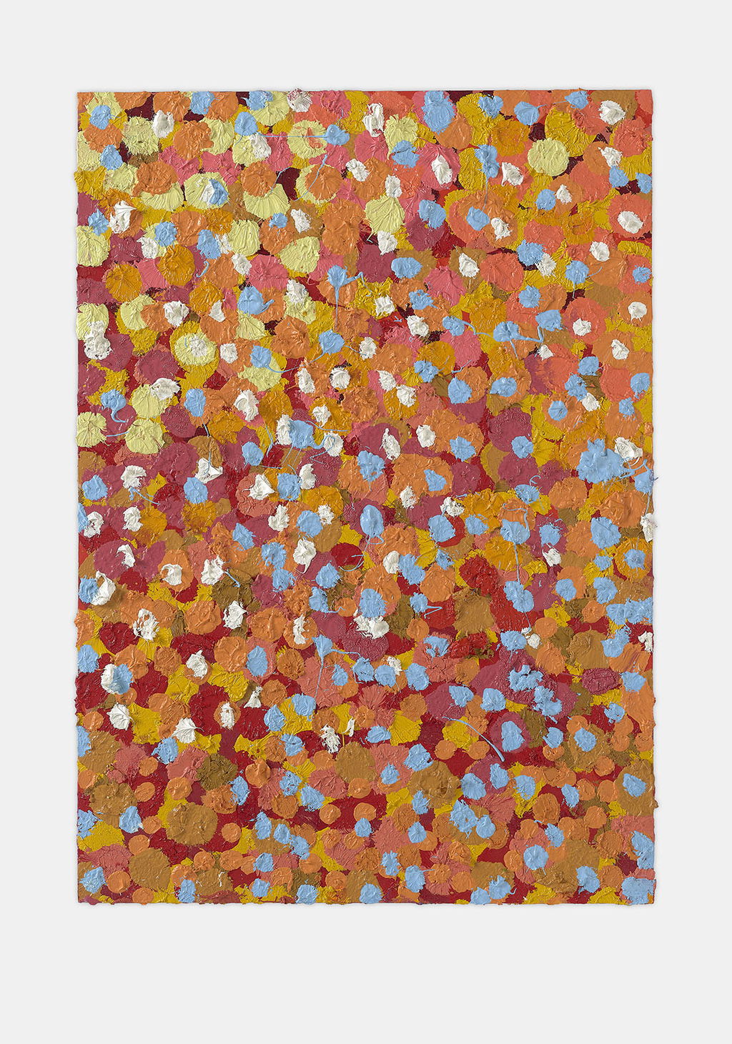 The Paper Veils are a series of 300 striking paintings on card completed in 2019, and available in two sizes. These paintings are a riotous ensemble of energetically coloured and thickly painted dots. Across each composition, Hirst revels in the joy of colour and the physicality of paint.