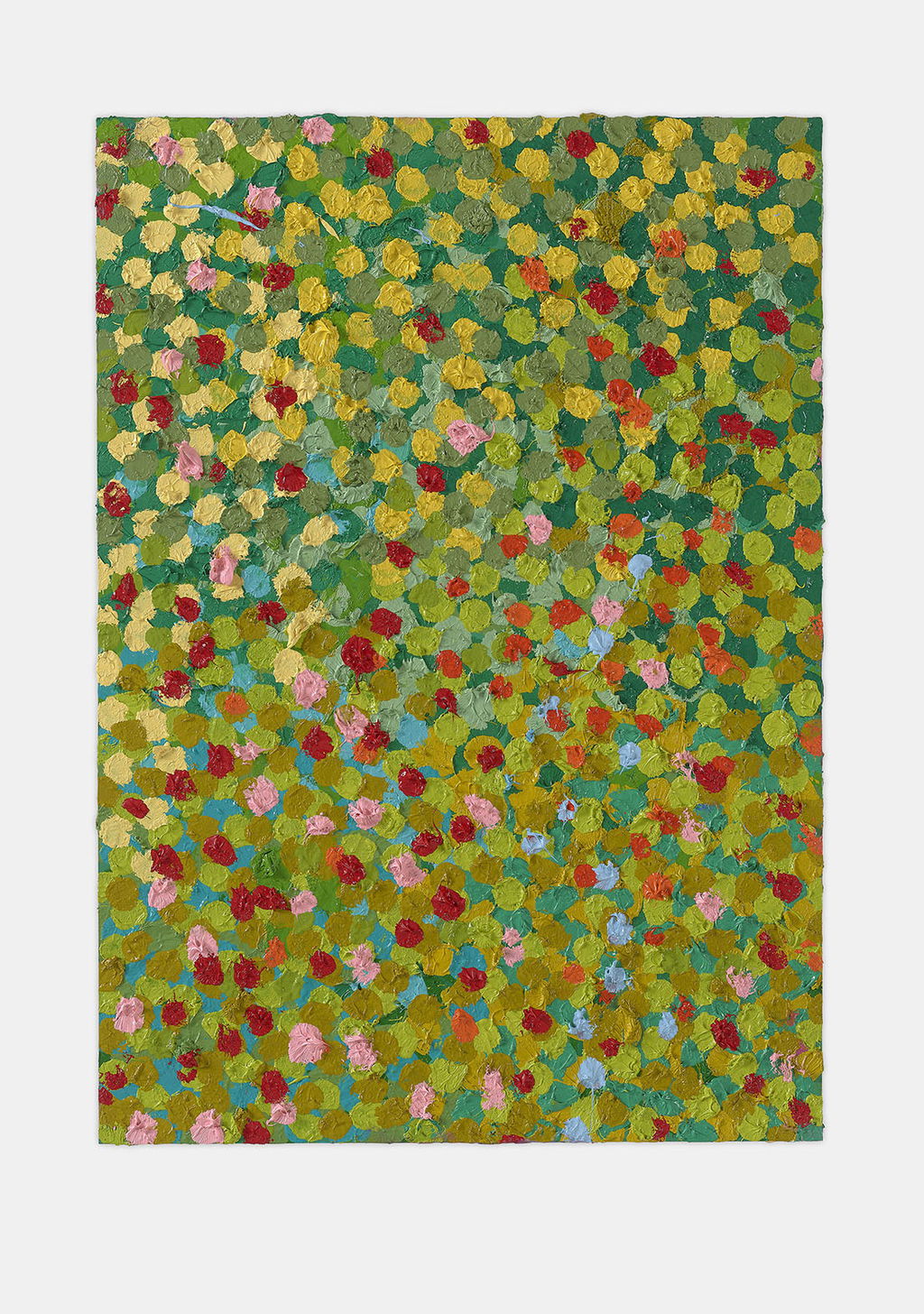 The Paper Veils are a series of 300 striking paintings on card completed in 2019, and available in two sizes. These paintings are a riotous ensemble of energetically coloured and thickly painted dots. Across each composition, Hirst revels in the joy of colour and the physicality of paint.