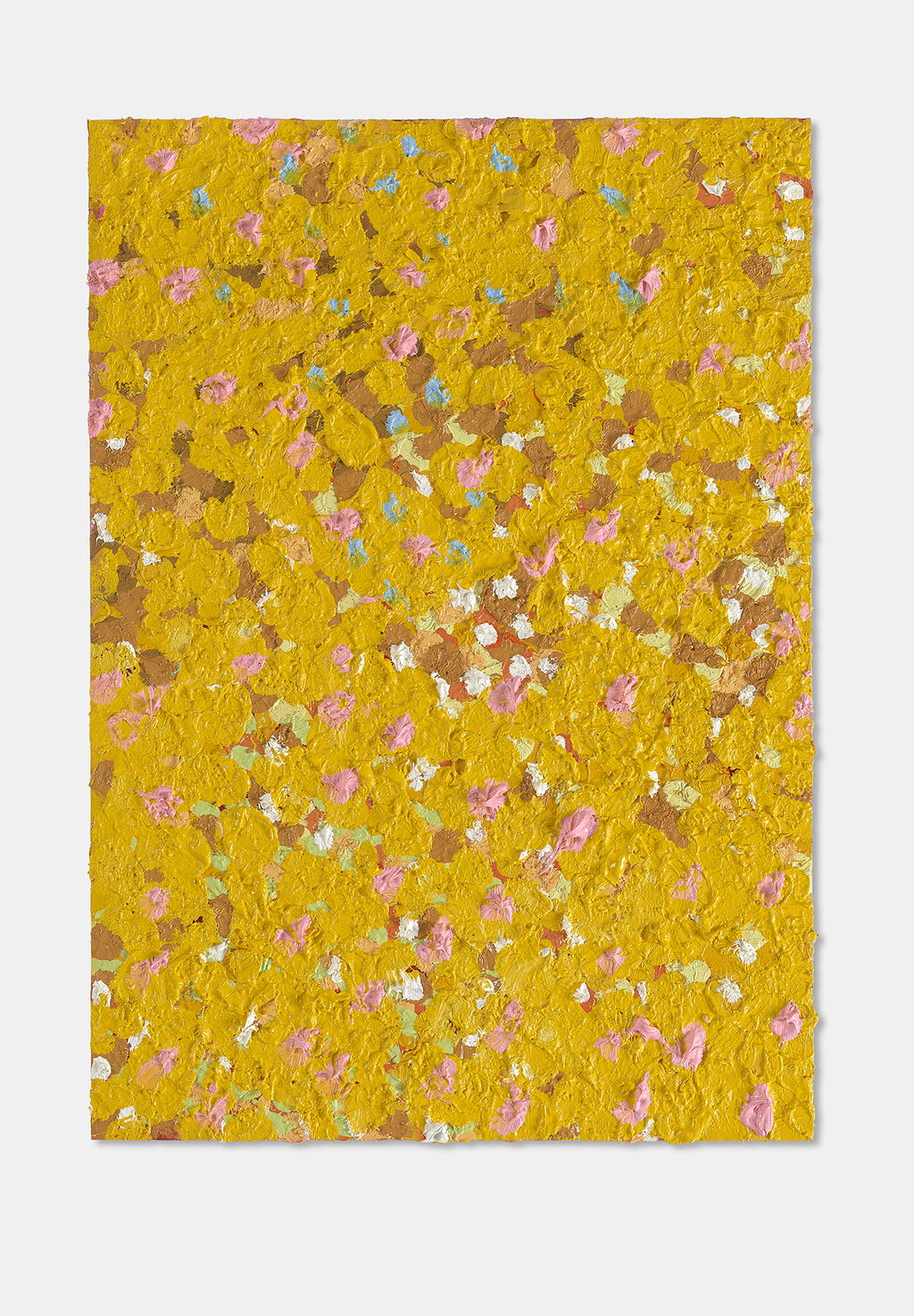 The Paper Veils are a series of 300 striking paintings on card completed in 2019, and available in two sizes. These paintings are a riotous ensemble of energetically coloured and thickly painted dots. Across each composition, Hirst revels in the joy of colour and the physicality of paint.