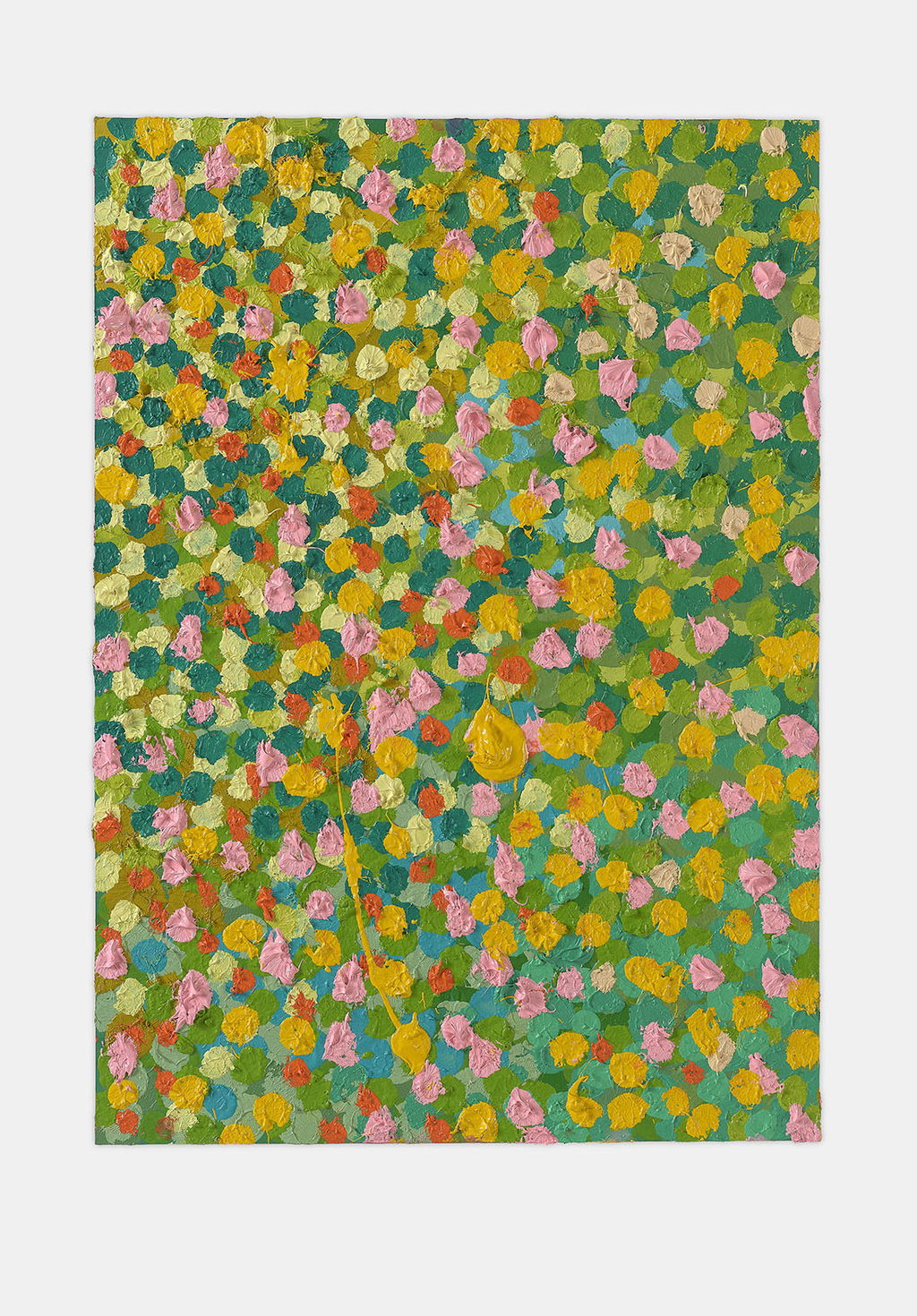 The Paper Veils are a series of 300 striking paintings on card completed in 2019, and available in two sizes. These paintings are a riotous ensemble of energetically coloured and thickly painted dots. Across each composition, Hirst revels in the joy of colour and the physicality of paint.