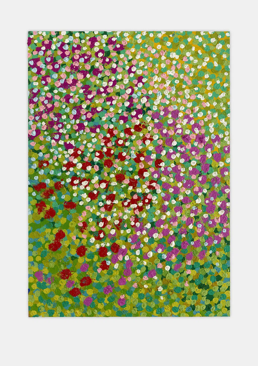 The Paper Veils are a series of 300 striking paintings on card completed in 2019, and available in two sizes. These paintings are a riotous ensemble of energetically coloured and thickly painted dots. Across each composition, Hirst revels in the joy of colour and the physicality of paint.