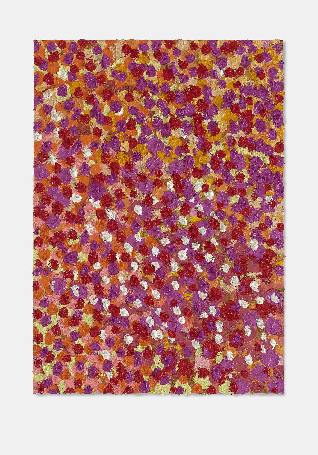 The Paper Veils are a series of 300 striking paintings on card completed in 2019, and available in two sizes. These paintings are a riotous ensemble of energetically coloured and thickly painted dots. Across each composition, Hirst revels in the joy of colour and the physicality of paint.
