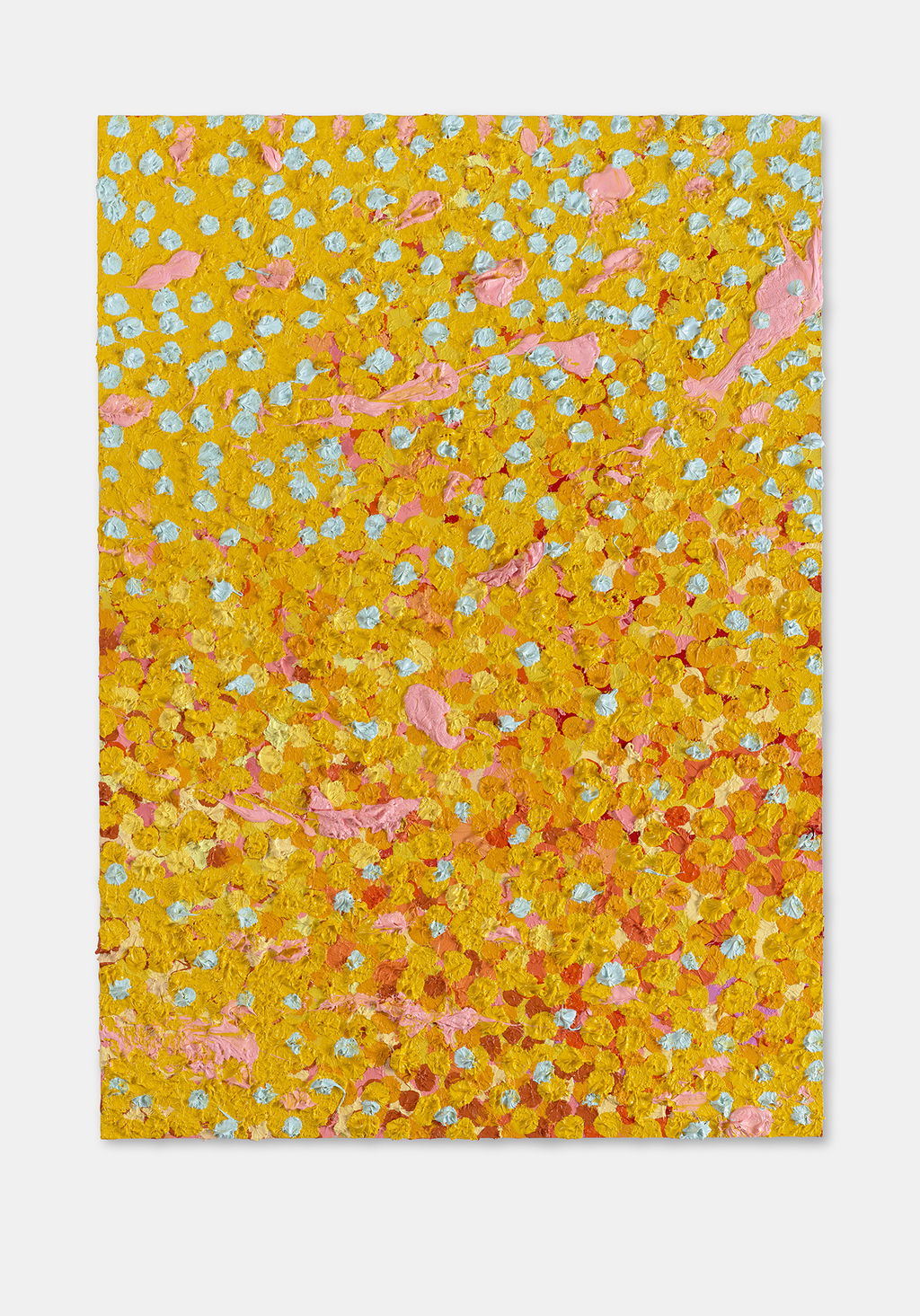 The Paper Veils are a series of 300 striking paintings on card completed in 2019, and available in two sizes. These paintings are a riotous ensemble of energetically coloured and thickly painted dots. Across each composition, Hirst revels in the joy of colour and the physicality of paint.