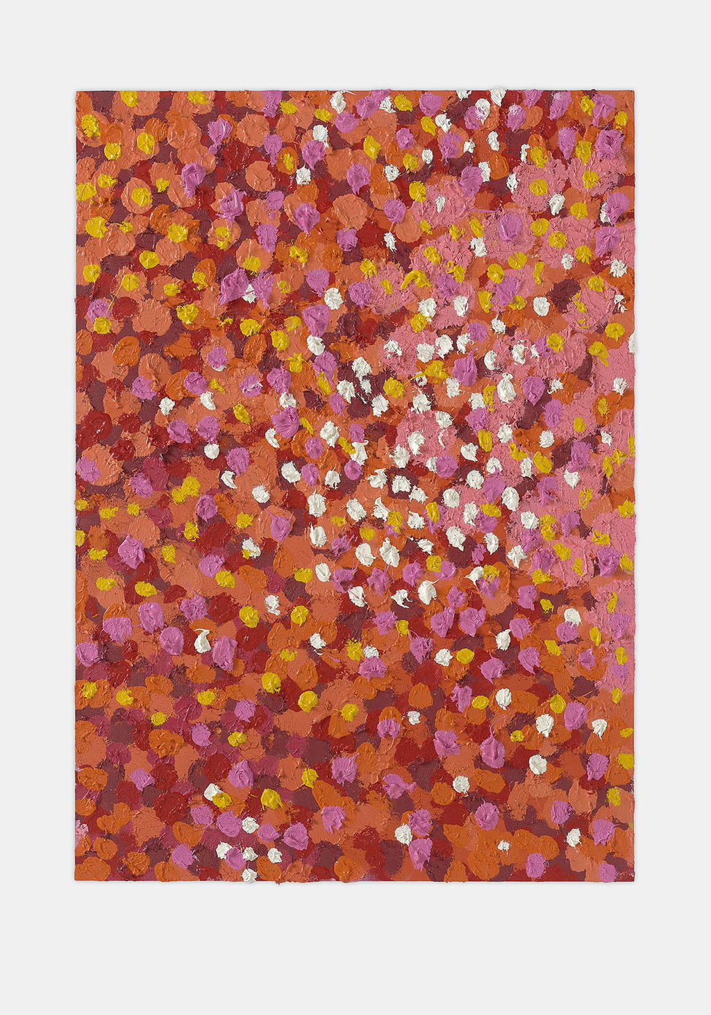 The Paper Veils are a series of 300 striking paintings on card completed in 2019, and available in two sizes. These paintings are a riotous ensemble of energetically coloured and thickly painted dots. Across each composition, Hirst revels in the joy of colour and the physicality of paint.