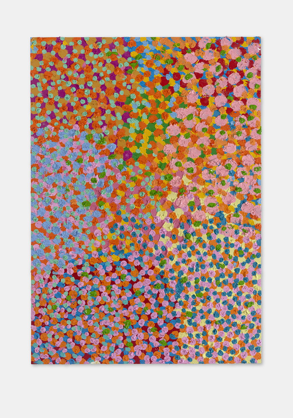 The Paper Veils are a series of 300 striking paintings on card completed in 2019, and available in two sizes. These paintings are a riotous ensemble of energetically coloured and thickly painted dots. Across each composition, Hirst revels in the joy of colour and the physicality of paint.