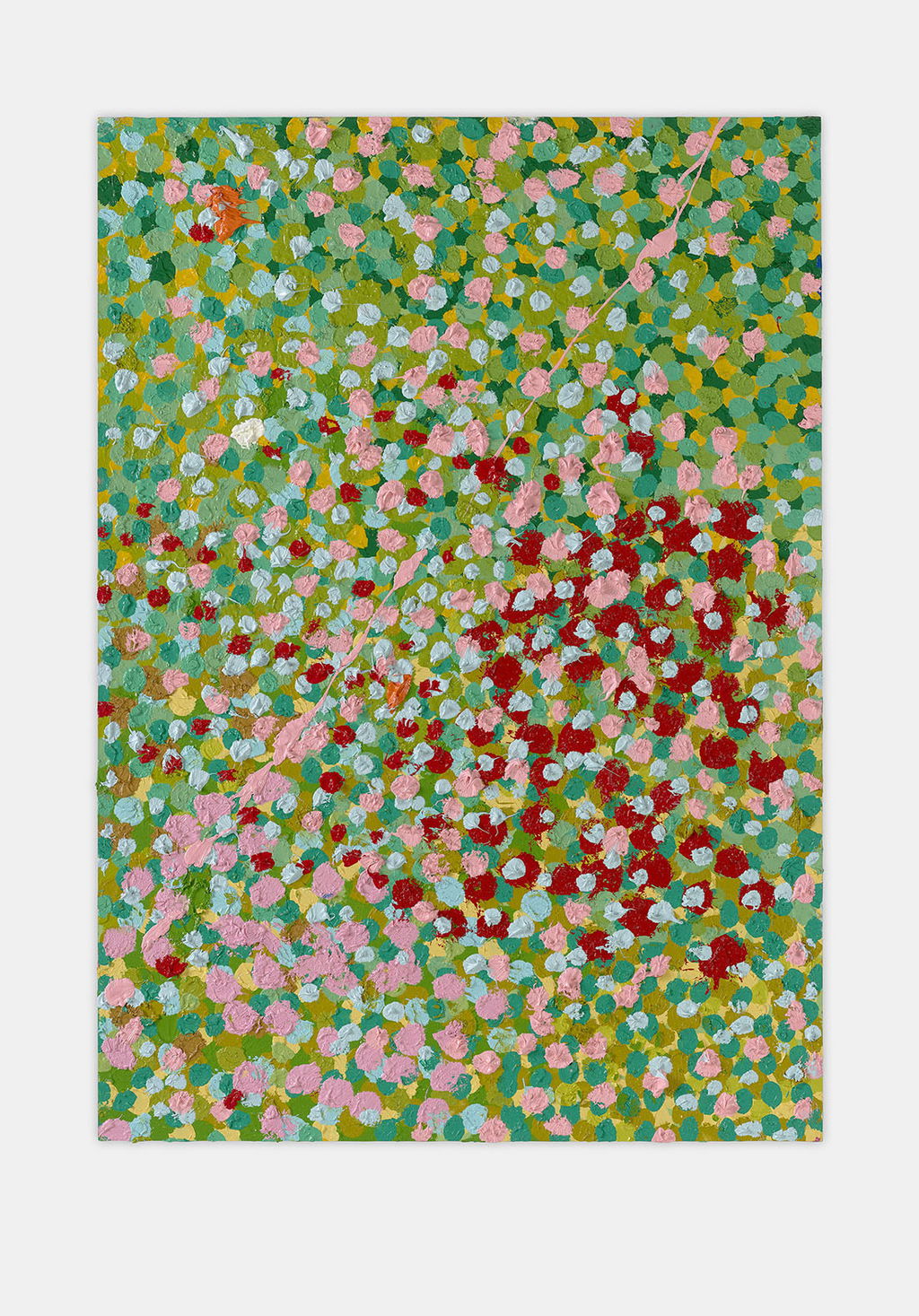 The Paper Veils are a series of 300 striking paintings on card completed in 2019, and available in two sizes. These paintings are a riotous ensemble of energetically coloured and thickly painted dots. Across each composition, Hirst revels in the joy of colour and the physicality of paint.
