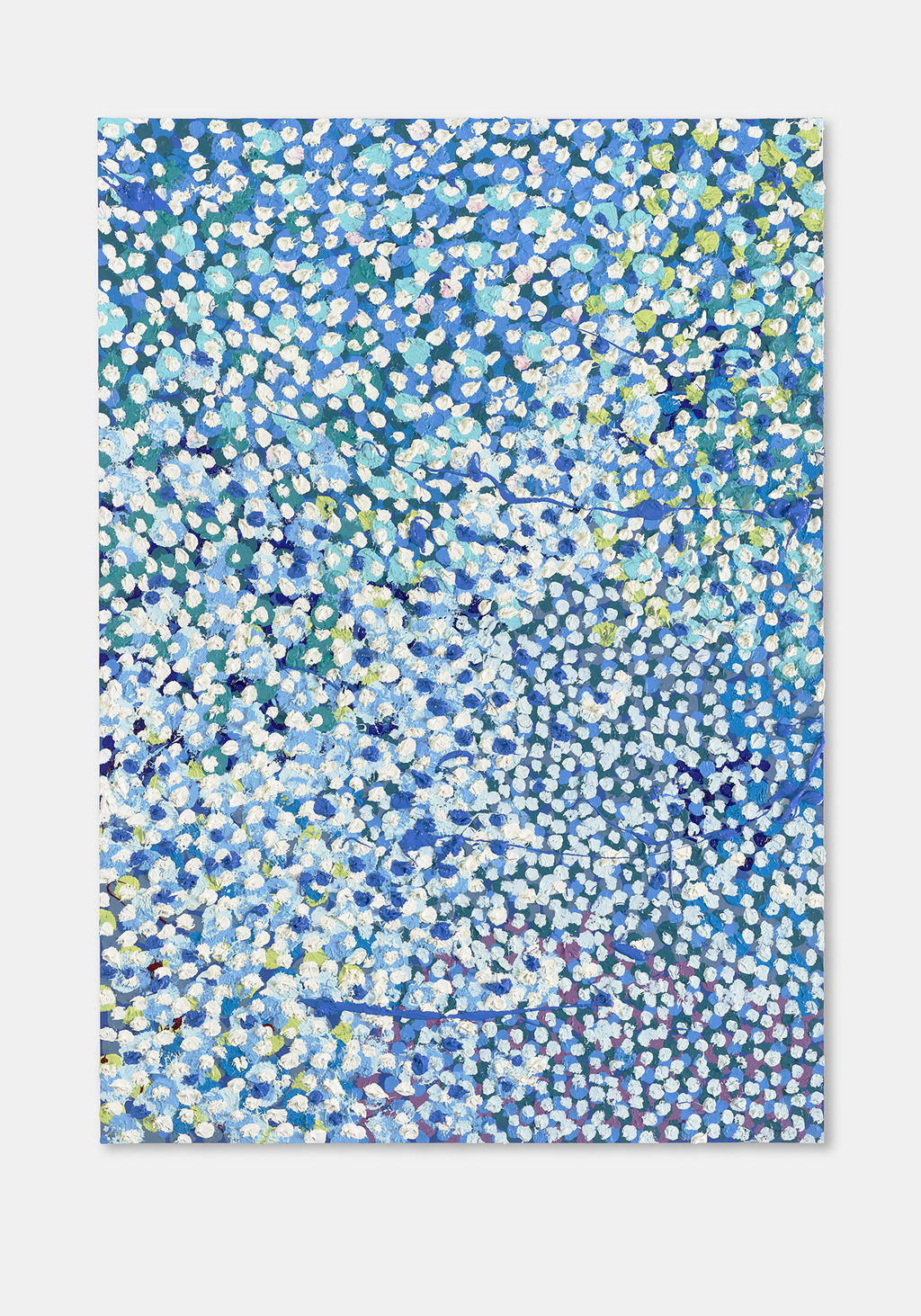 The Paper Veils are a series of 300 striking paintings on card completed in 2019, and available in two sizes. These paintings are a riotous ensemble of energetically coloured and thickly painted dots. Across each composition, Hirst revels in the joy of colour and the physicality of paint.
