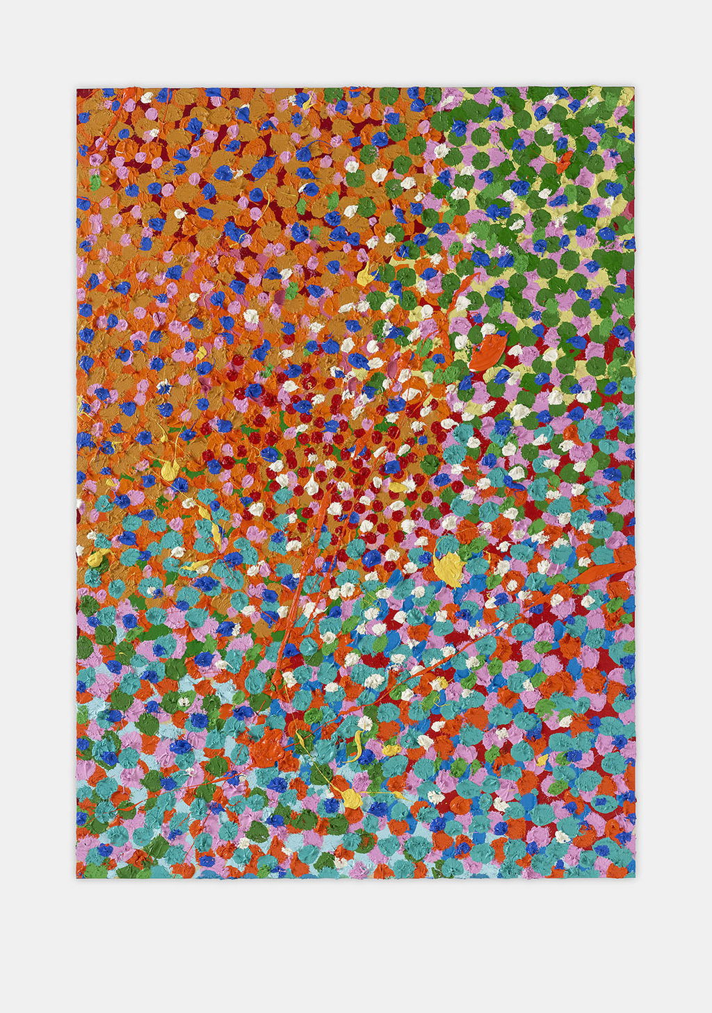 The Paper Veils are a series of 300 striking paintings on card completed in 2019, and available in two sizes. These paintings are a riotous ensemble of energetically coloured and thickly painted dots. Across each composition, Hirst revels in the joy of colour and the physicality of paint.